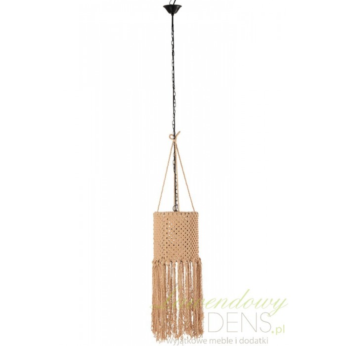 Lampy w stylu skandynawskim takie jak lampy z makaramy są najlepszym wyborem do wyposażenia wnętrz takich jak pokoje i salony, w których przytulne światło to podstawa. Lampa makrama to lampa sufitowa w kolorze beżowym ozdobiona swobodnie zwisającymi frędzlami. Wewnątrz materiałowego klosza znajduje się miejsce na jedną żarówkę. Lampa wyposażona w długi łańcuch wprowadzi do wnętrza dozę skandynawskiego designu.