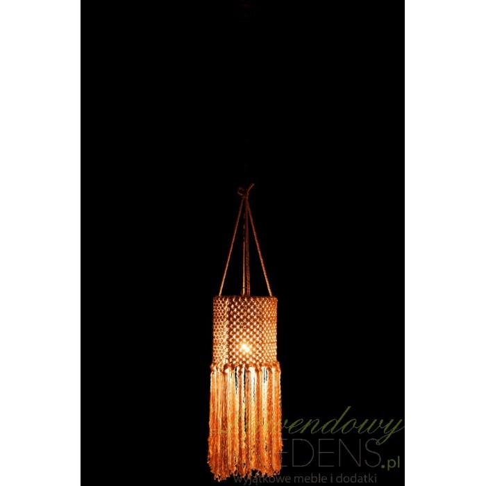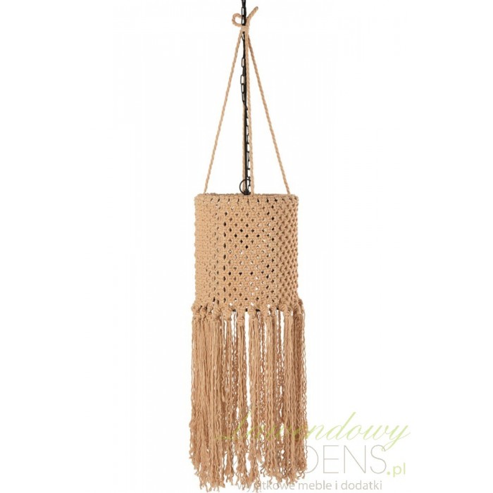 Beżowa lampa makrama Home Decoration wykonana z znanej od starożytności makaramy i metalu to pewność, że każde wnętrze będzie klimatycznie oświetlone za dnia i w nocy.