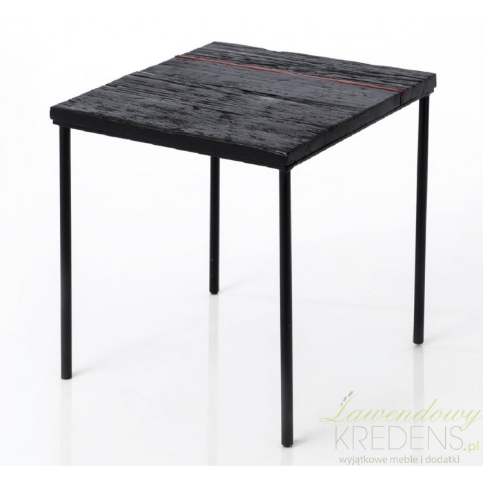 Stolik kawowy wykonany w minimalistycznej formie ma metalowe nogi i drewniany blat, a to wszystko utrzymane w czarnym kolorze. Loftowy stolik spełnia wszystkie wymagania tego stylu, a jedynym jego ozdobnikiem jest czerwony pasek na blacie. Poczuj się w swoim domu jak w prawdziwym lofcie na Manhattanie i zamów meble loft, których potrzebujesz. To wszystko znajdziesz w naszej ofercie!