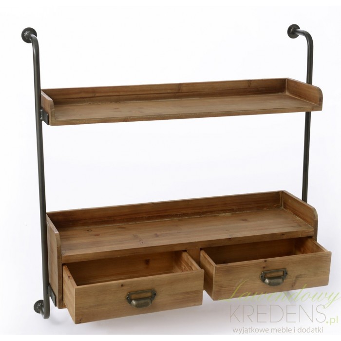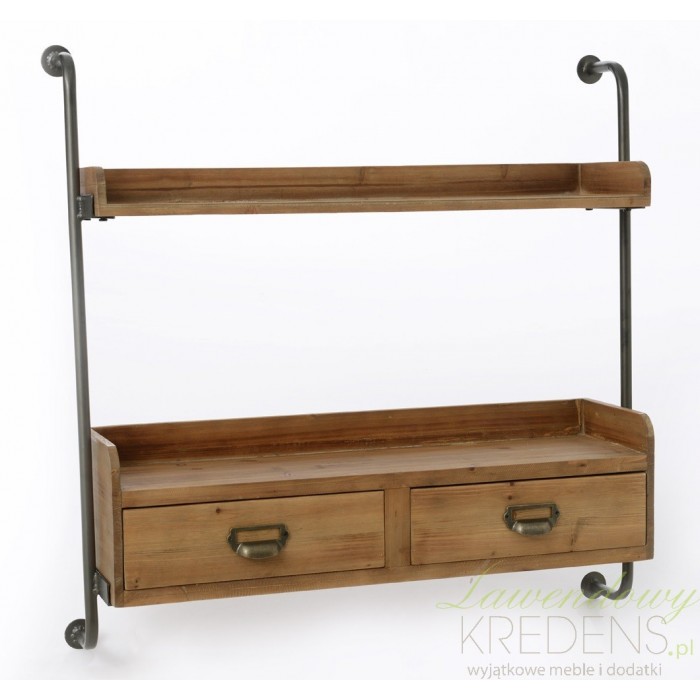 Jeśli szukasz mebli, które będą pasowały do nowoczesnych i nieco surowych wnętrz loft to jesteśmy pewni, że prezentowane, kompaktowe półki ścienne zwrócą Twoją uwagę. Półki zrobione z połączenia metalowych uchwytów i drewna jodłowego to jedno z genialnych połączeń, które sprawdzi się doskonale w praktycznych wnętrzach. Półki ścienne w stylu industrialnym z dwoma szufladkami wybierz do przedpokoju, kuchni lub do łazienki. Meble w stylu industrialnym możesz śmiało zestawiać z innymi, funkcjonalnymi meblami zaprojektowanymi na styl industrialny z tej samej kolekcji.