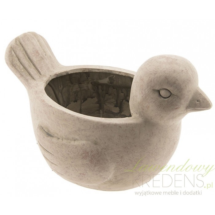 Urokliwa osłonka na doniczkę w kolorze piaskowym została wykonana z terakoty. Dzięki naturalnej, ziemistej barwie idealnie nadaje się do wystroju wnętrza w każdym stylu ale także do ogrodu. Osłonka ma kształt ptaszka i miejsce na okrągłą doniczkę. W ofercie producenta Clayre&Eef znajdziesz również inne osłonki np. w kształcie ogrodowych krasnali.