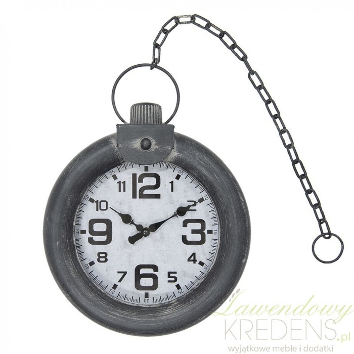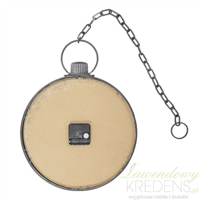 Zegar w stylu industrialnym, oryginalny charakter zyskuje dzięki dodatkowemu elementowi dekoracyjnemu - łańcuszkowi zamocowanemu do górnej części zegara. Prezentowany zegar jest praktycznym i niezbędnym dodatkiem do każdego wnętrza. Zegar industrialny w szarym kolorze z białą tarczą i czarnymi cyframi pasuje na ścianę w każdym kolorze. Pozostałe, równie stylowe zegary w stylu industrialnym znajdziesz w ofercie marki Clayre&Eef.