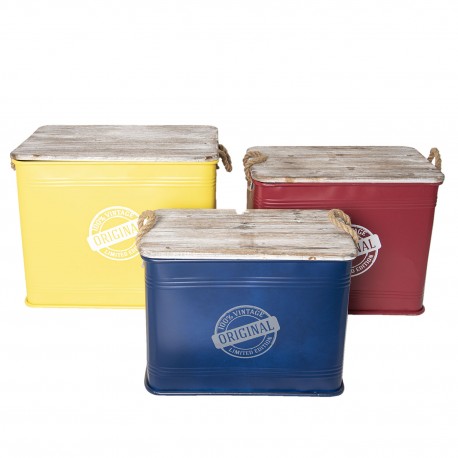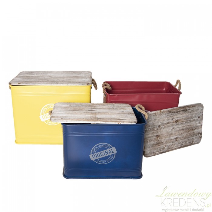 Szukasz oryginalnych mebli w stylu industrialnym? Trzy pojemniki w stylu industrialnym w kolorach: niebieskim, żółtym i czerwonym mają w sobie wszystko czego oczekujesz od praktycznych mebli!
