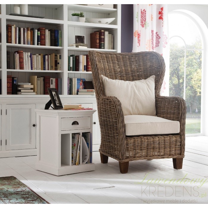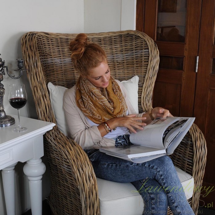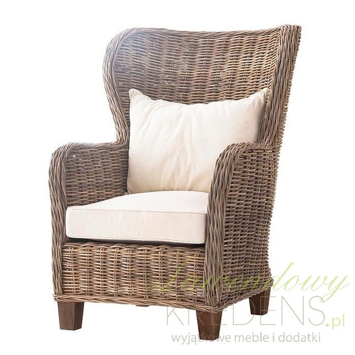 Zaaranżuj wnętrze według własnego pomysłu wykorzystując rattanowe meble. Fotele z rattanu to produkty zaprojektowane by cieszyć oko i oferować komfort jakiego jeszcze nie doświadczyłeś. Prezentowany fotel ma brązowy kolor, lekko zaokrąglone oparcie i zabudowane nogi. Fotel rattanowy dodatkowo wyposażony jest w miękkie, kremowe poduszki!