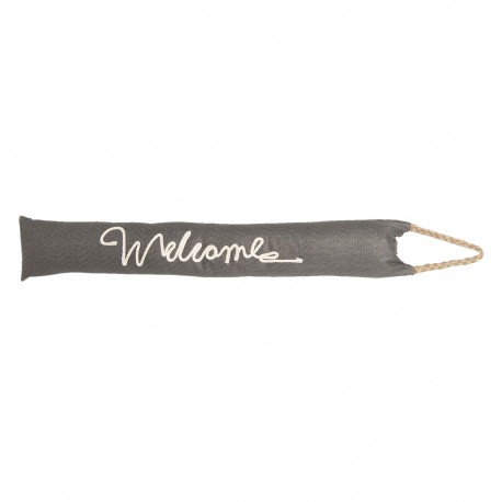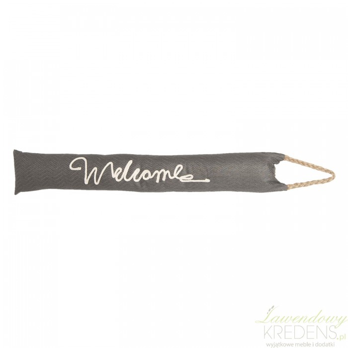 Nowość od Clayre&Eef - wałek pod drzwi z poręcznym sznurkiem do przenoszenia. Poduszka w uniwersalnym, granatowym kolorze, wykonana jest z solidnej tkaniny, pięknie obszyta po bokach. Poduszka może posłużyć jako ozdoba wnętrza, jako zagłówek lub poduszka zabezpieczająca przed chłodnym przeciągiem. Poduszki wałki pod drzwi posiadają miękkie wypełnienie.