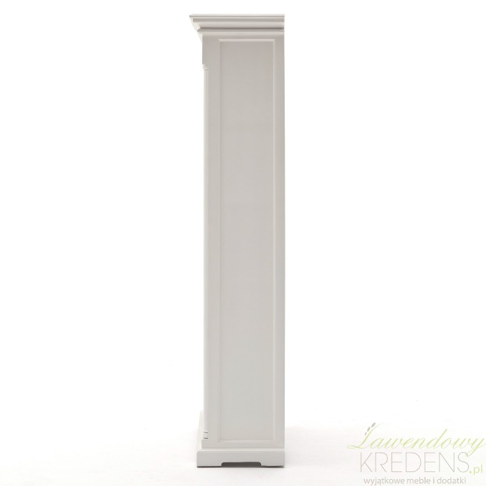 Biały kolor oraz częściowo ekspozycyjna konstrukcja sprawiają, że regał w stylu prowansalskim Lumi będzie wszechstronnym meblem w salonie, w jadalni, a nawet w domowym biurze. Przydatny jako miejsce na dekoracje, organizer lub mebel oddzielający kuchnię od salonu. Marka Meble Prowansalskie NS zadbała o każdy szczegół, od podstawy, przez uchwyty aż po opływowy fornir zdobiący górną część regału. Uwielbiane przez klientów naszego sklepu meble prowansalskie i industrialne to imponujące dopełnienie niemal każdej aranżacji.