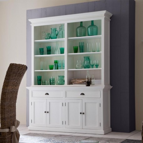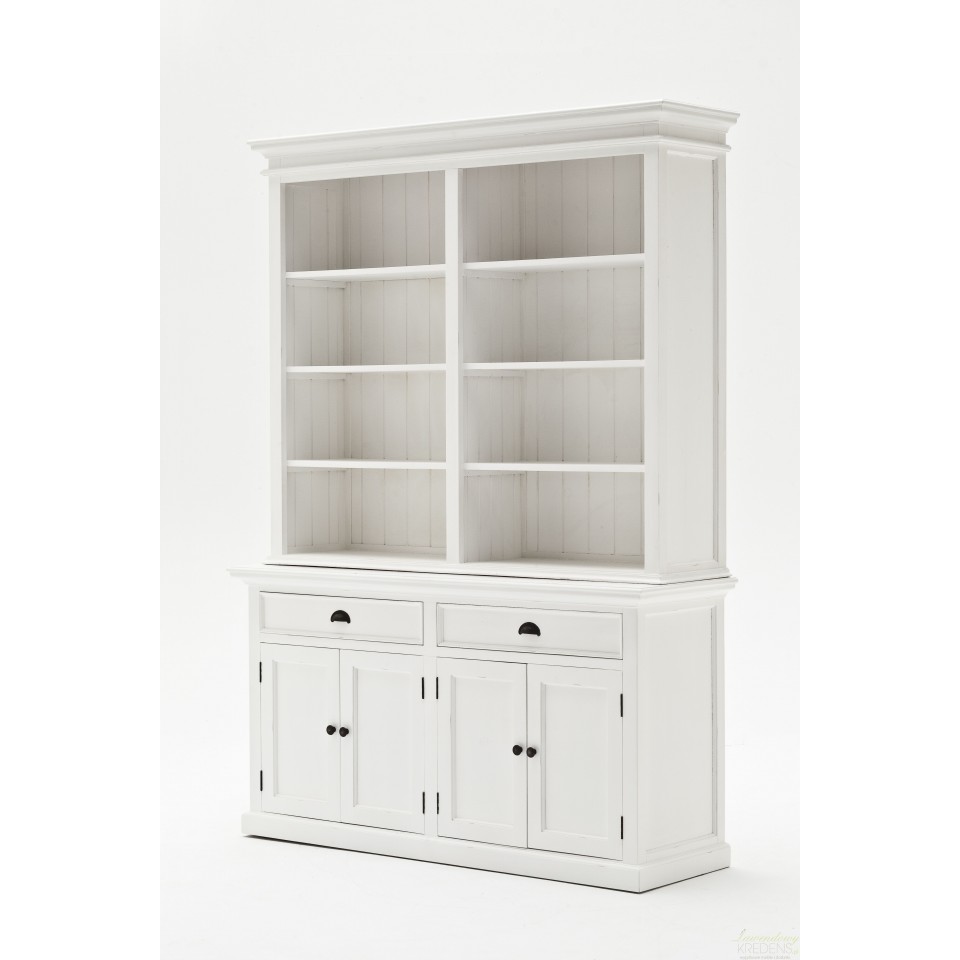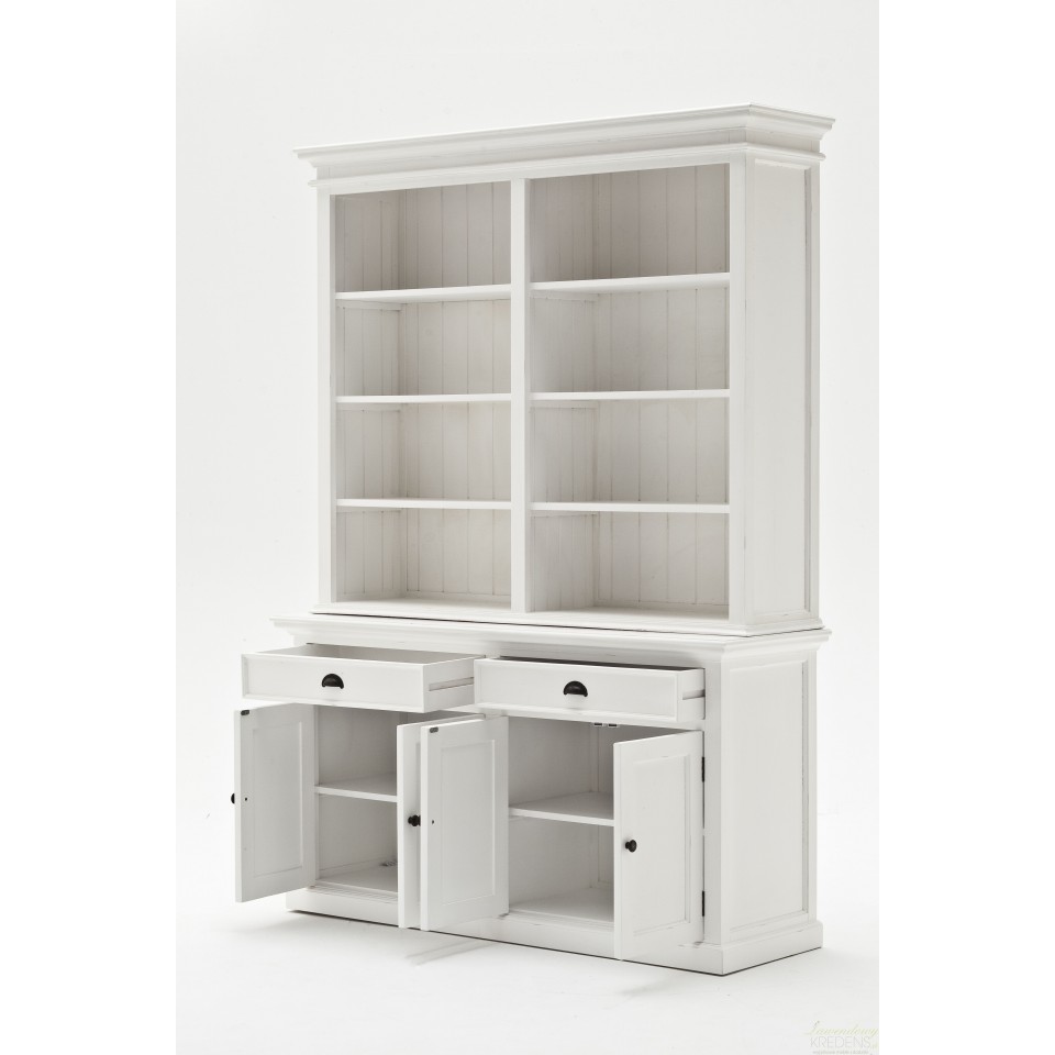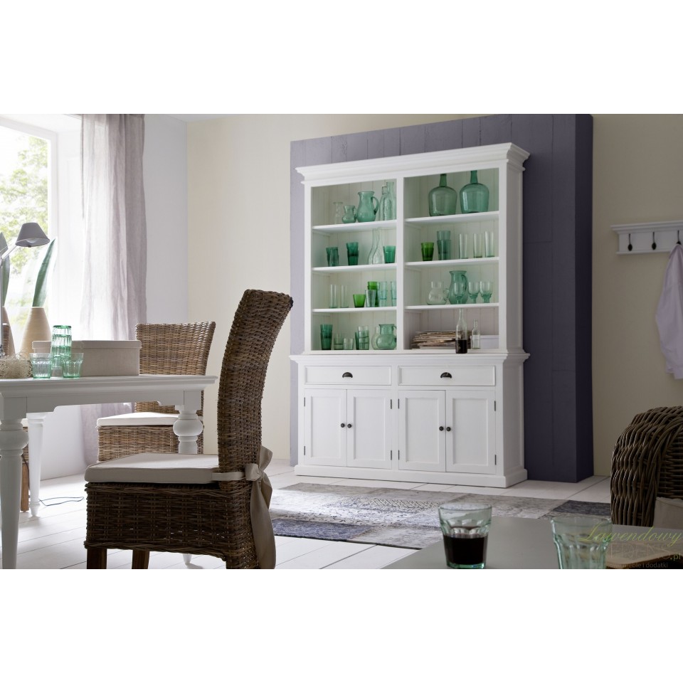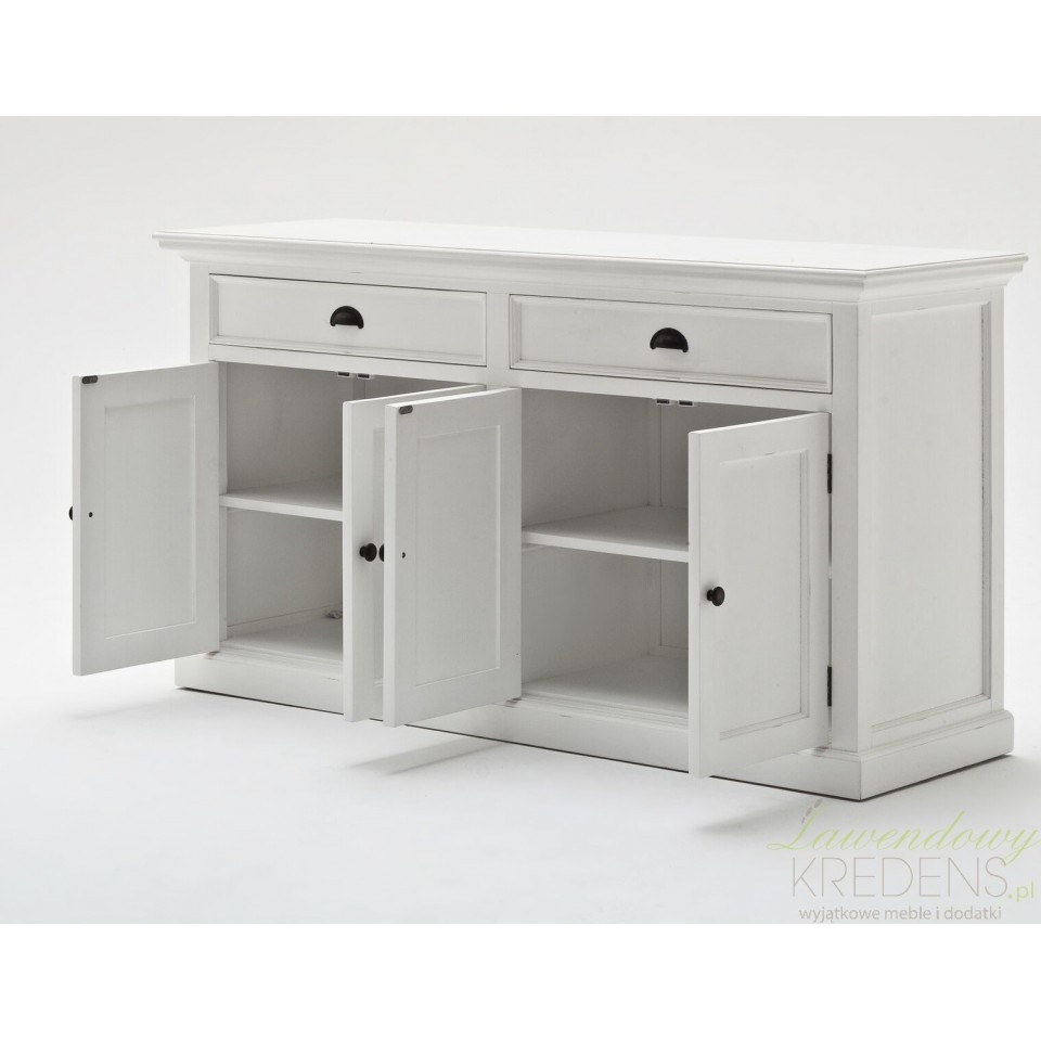 Świetny kredens w stylu prowansalskim do każdego pomieszczenia w Twoim domu. To doskonałe miejsce na książki, wazony, naczynia, bieliznę, odzież, kosmetyki lub sekretne przedmioty! Wykonany z drewna mahoniowego i pomalowany na biało został wyposażony w półki, szuflady i szafki - wszystko czego potrzebujesz w jednym meblu! Meble prowansalskie Lumi to sposób na spójną i atrakcyjną wizualnie aranżację wnętrza.