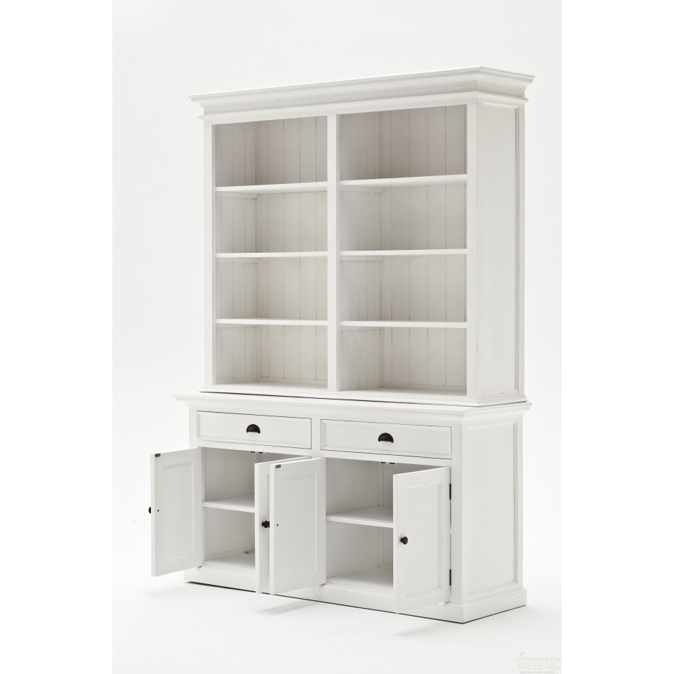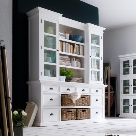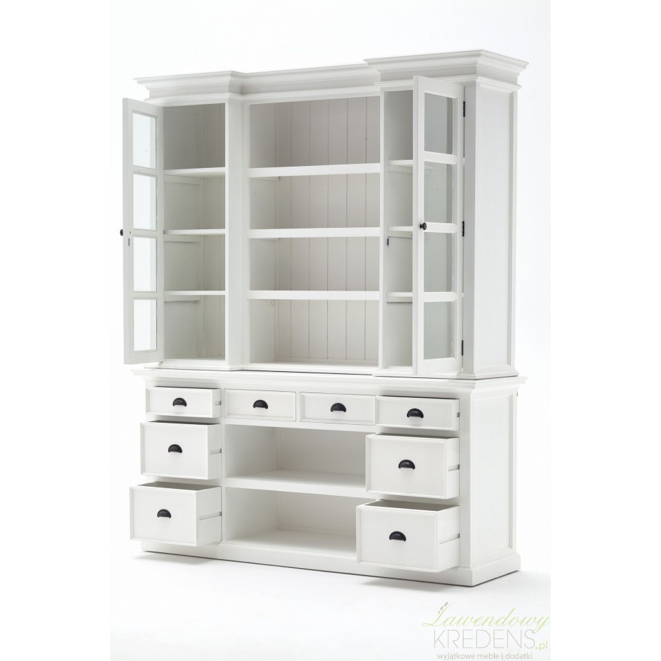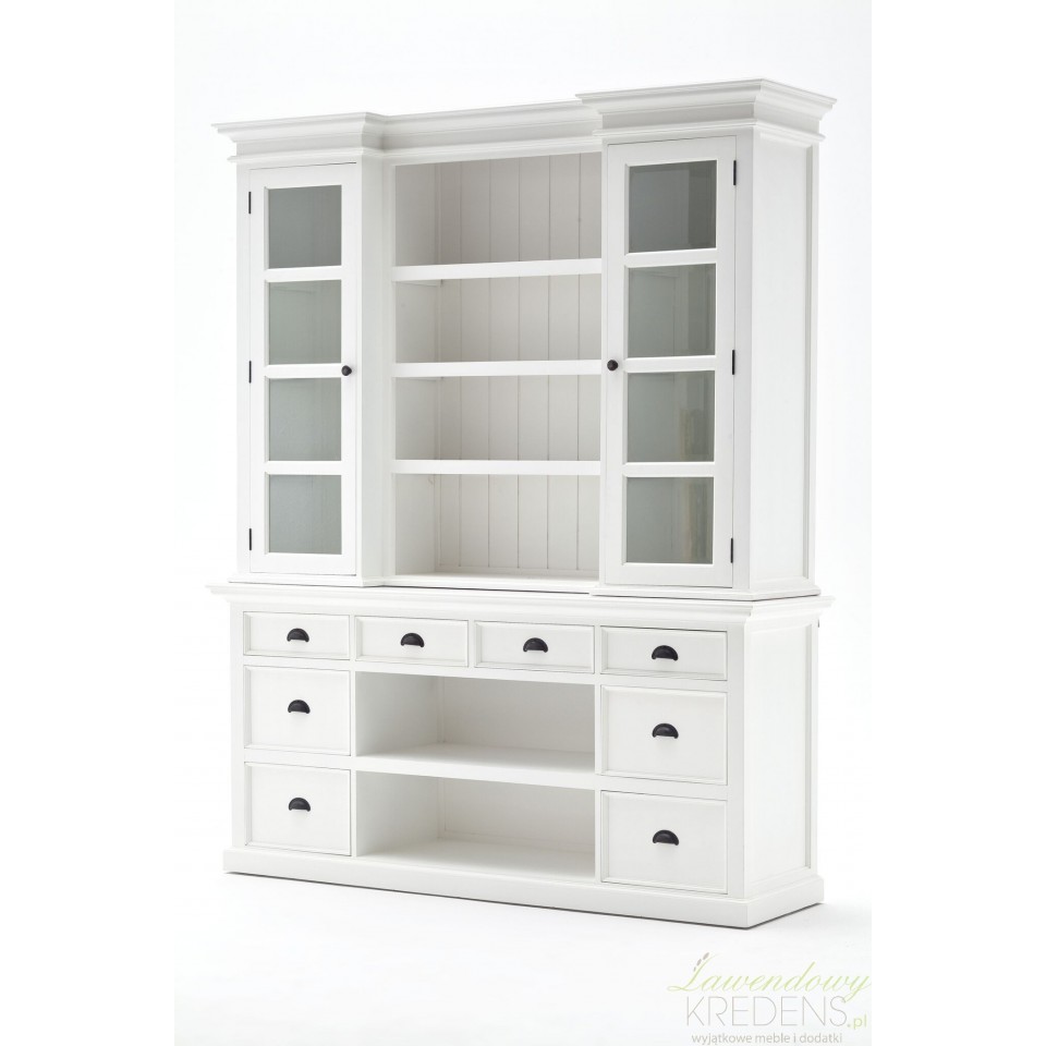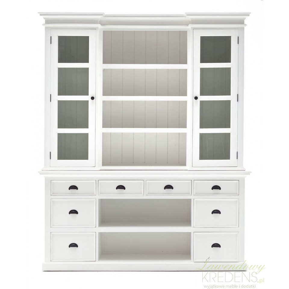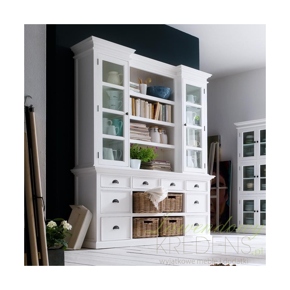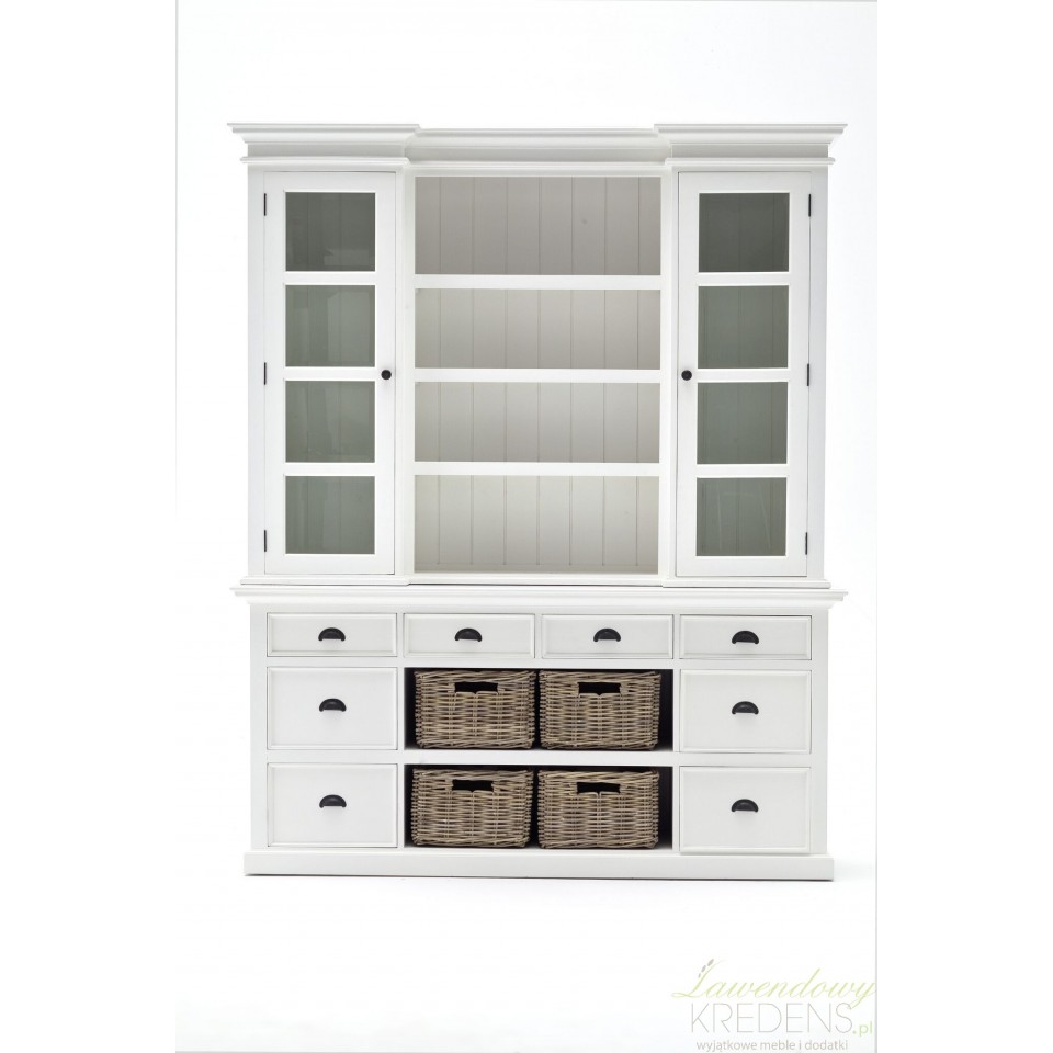 Biały kredens w stylu prowansalskim Lumi posiada liczne, przestronne, otwarte półki i klasyczne efekty wizualne, aby wzbogacić styl Twojego wnętrza w wielkim stylu. Kredens prowansalski składa się z dwóch części – dolnej, która wyposażona jest w szuflady i wiklinowe kosze oraz górnej, gdzie znajdują się otwarte i ukryte za szklanymi drzwiami półki. Prezentowany mebel z mnóstwem zakamarków zastąpi nie jedną komodę i szafkę w Twojej jadalni, w salonie lub w kuchni. Meble Prowansalskie NS to wybór, nad którym nie musisz się zastanawiać!