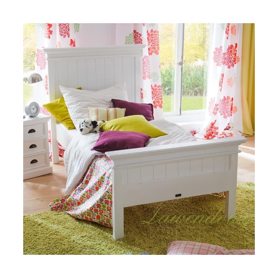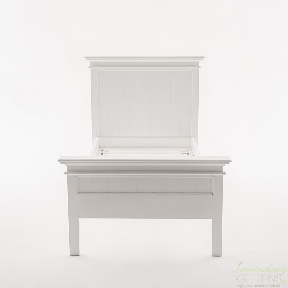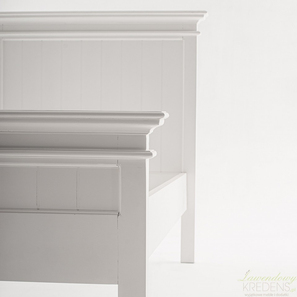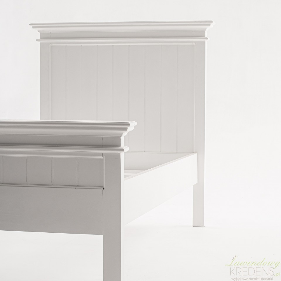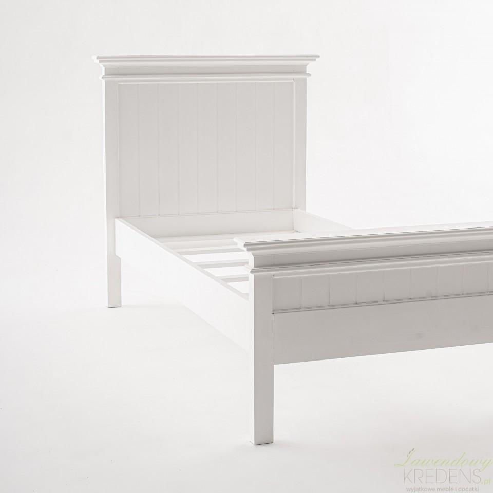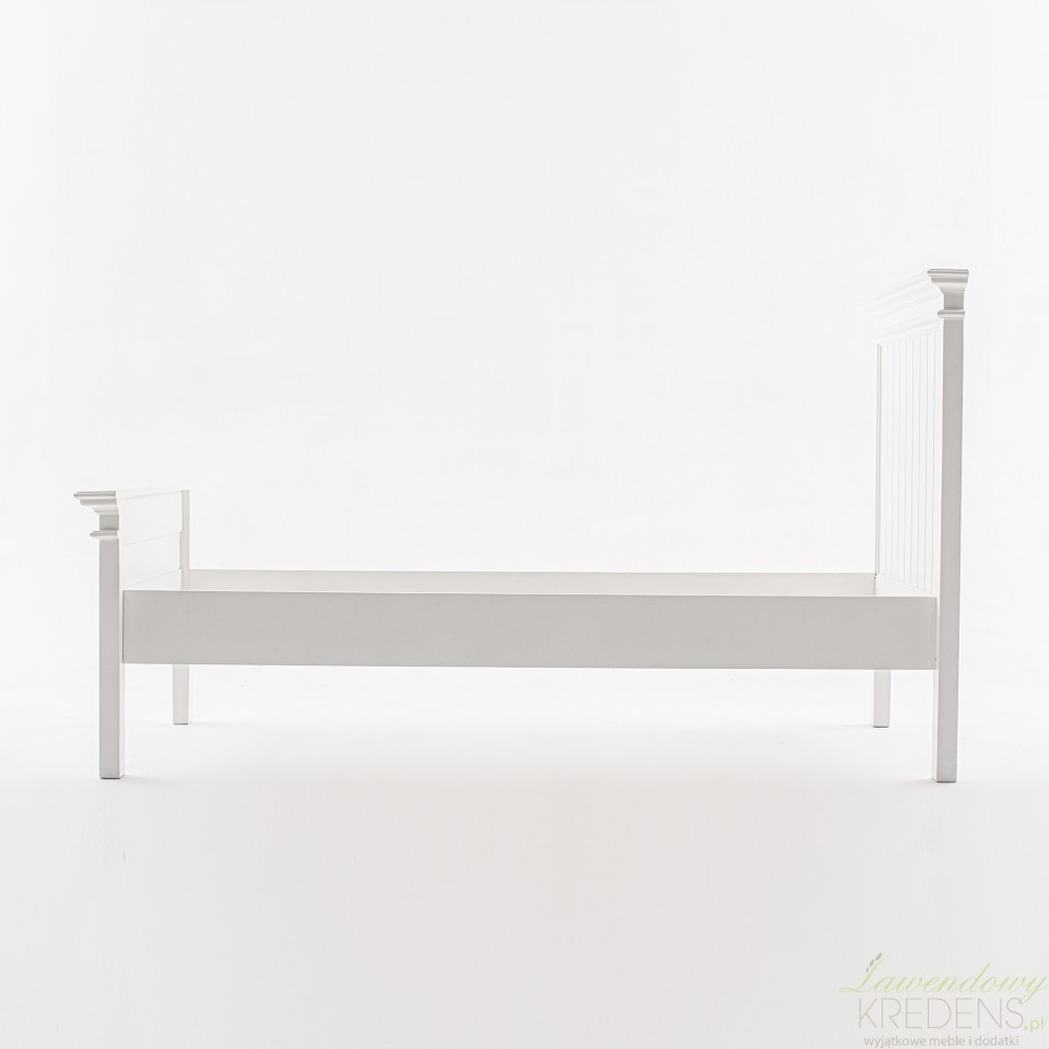 Łóżko w stylu prowansalskim Lumi w kolorze białym z łatwością dopasuje się do rozmaitych aranżacji, w tym rustykalnych, francuskich i nowoczesnych. Poza tradycyjną i solidną konstrukcją z drewna mahoniowego, prezentowane łóżko prowansalskie ma stylowy zagłówek z podniesionym brzegiem i dekoracyjną listwą. Kompatybilne ze wszystkimi typami materacy o wymiarach 90x200 centymetrów jest odpowiednim miejscem dla jednej osoby. Meble Prowansalskie NS to marka, której specjalnością są białe meble prowansalskie i industrialne.