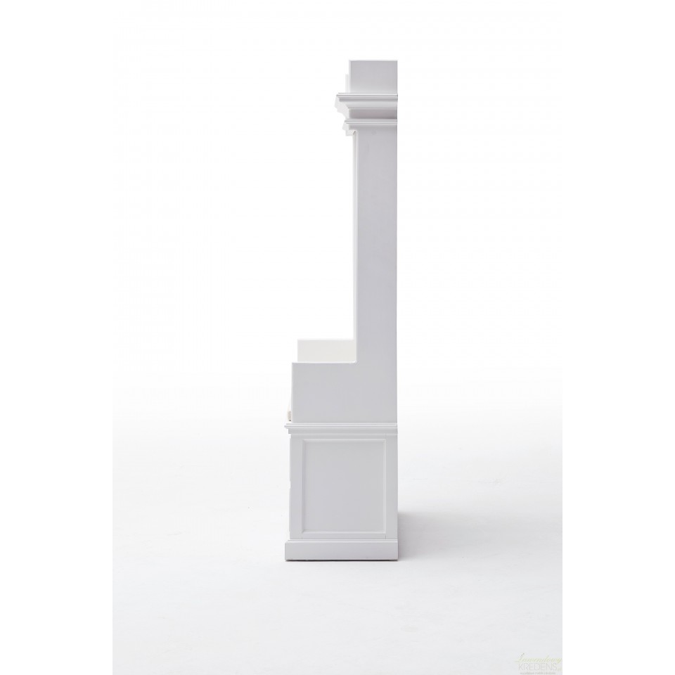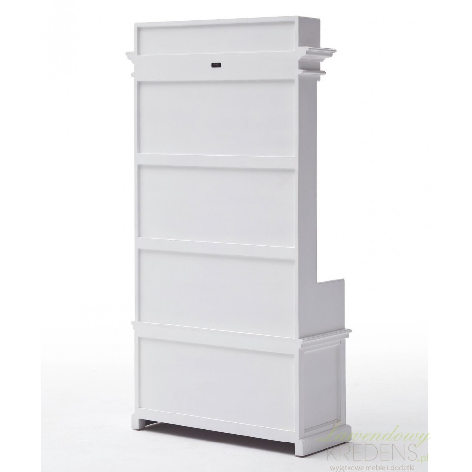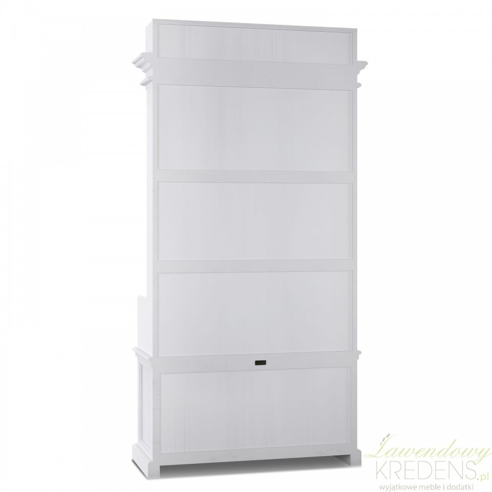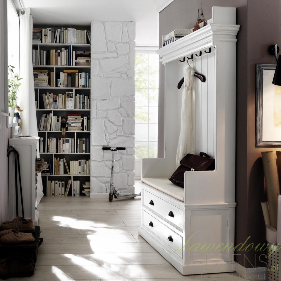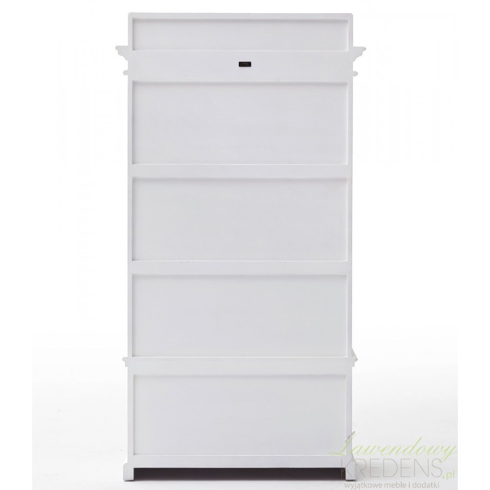 To biały regał w stylu prowansalskim z kolekcji Lumi. Dzięki wykorzystaniu drewna mahoniowego, mebel jest solidny i trwały, jedyny w swoim rodzaju. Komoda prowansalska to idealna propozycja do przedpokoju, oferuje miejsce do wieszania odzieży (posiada wieszaki), do siedzenia (wyposażona jest w siedzisko) i do przechowywania - ma dwie pojemne szufladki.