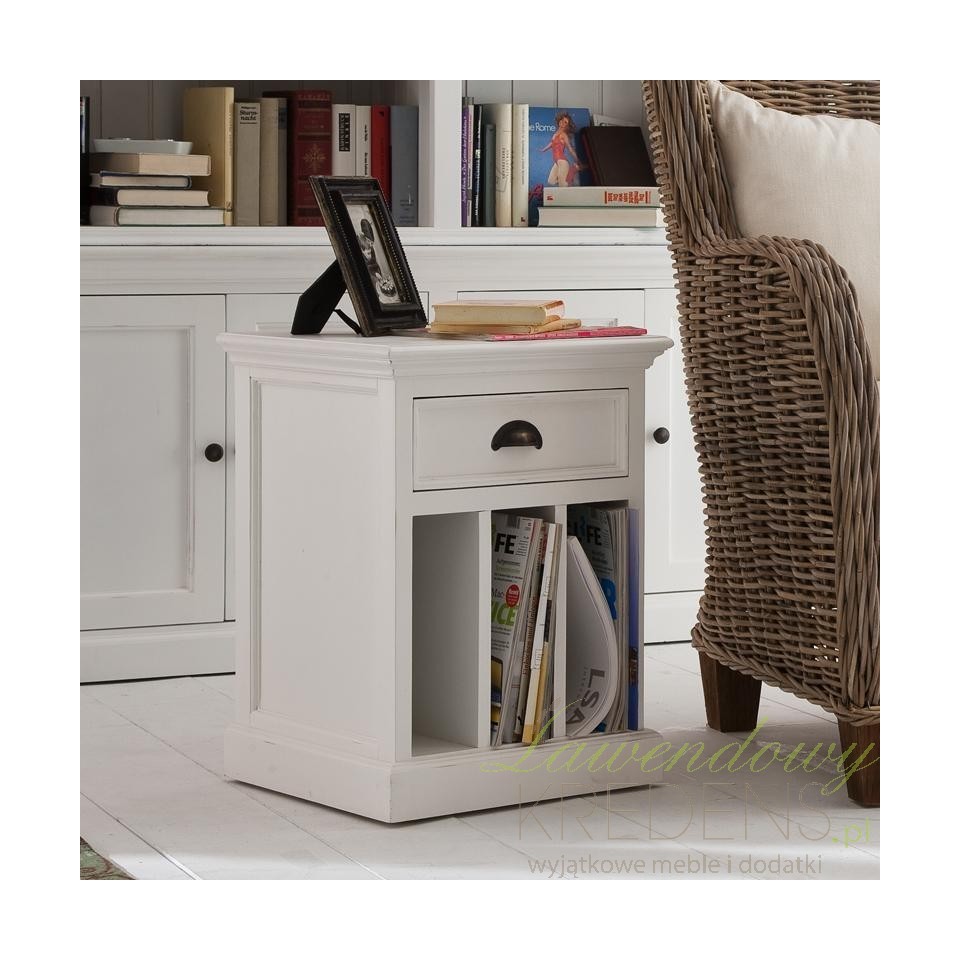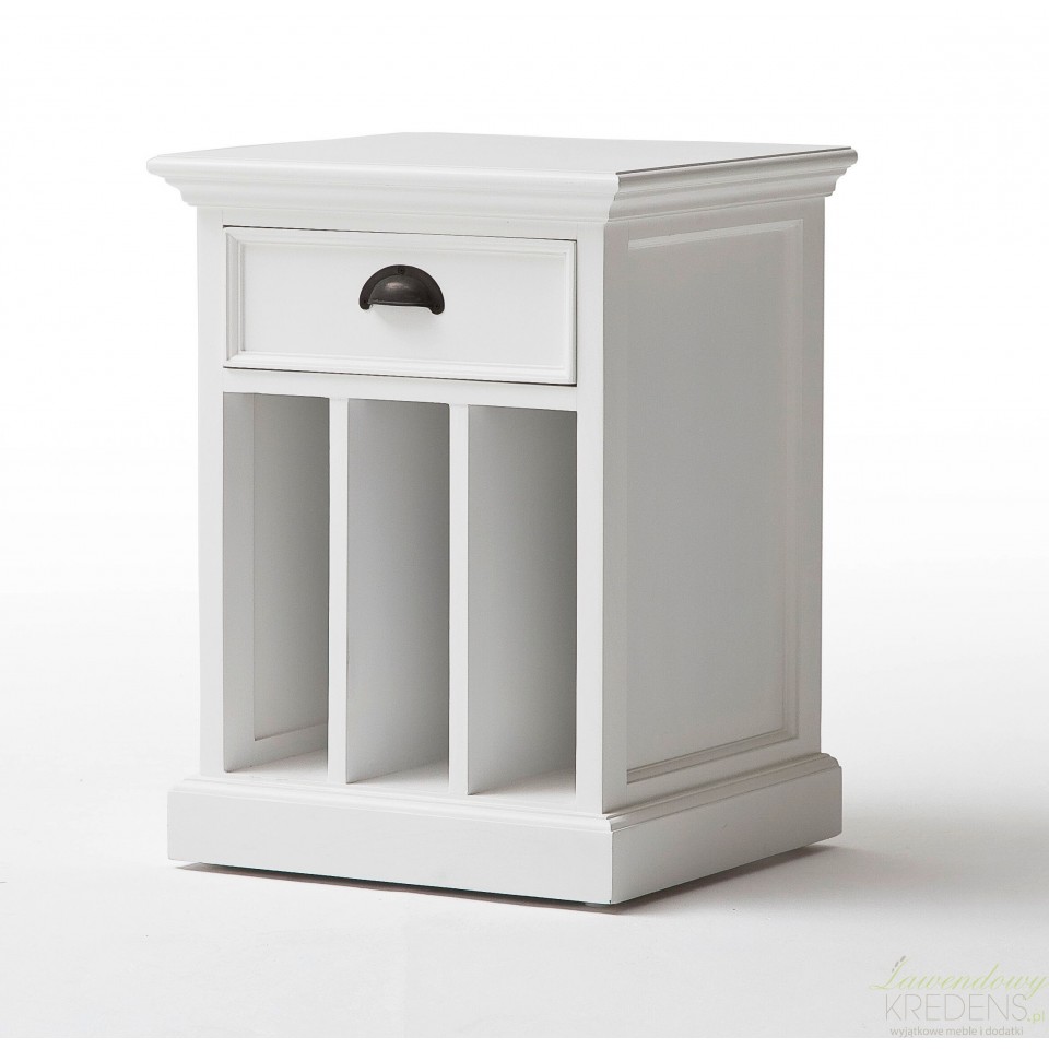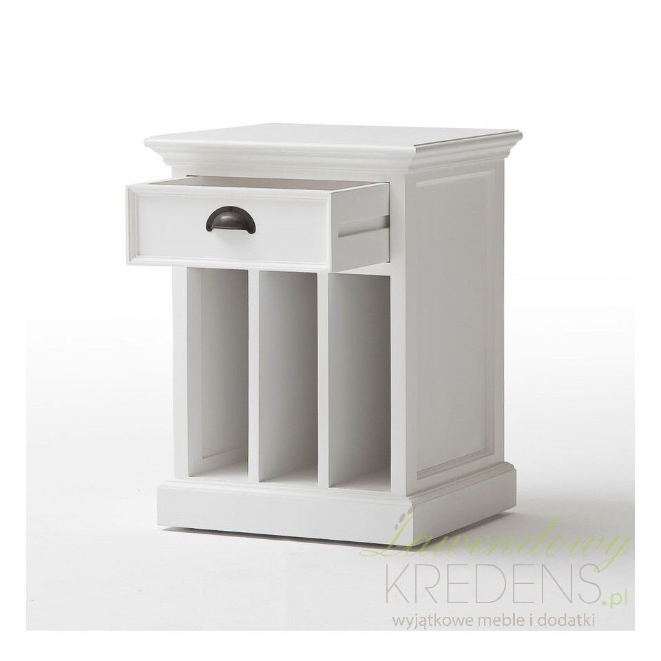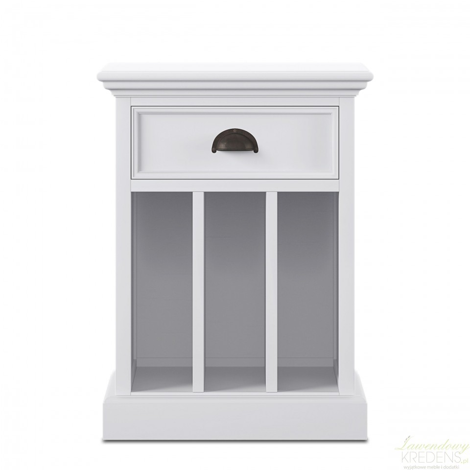 Szafka w stylu prowansalskim Lumi z szufladką i półką z trzema przegródkami. To mebel, którego funkcjonalność i naturalne piękno zostaną docenione we wnętrzach takich jak sypialnie i salony. Szafka prowansalska wykonana jest z drewna mahoniowego i malowana na biało. Meble prowansalskie z serii Lumi dostępne są w wielu praktycznych rozmiarach - z pewnością znajdziesz coś dla siebie!