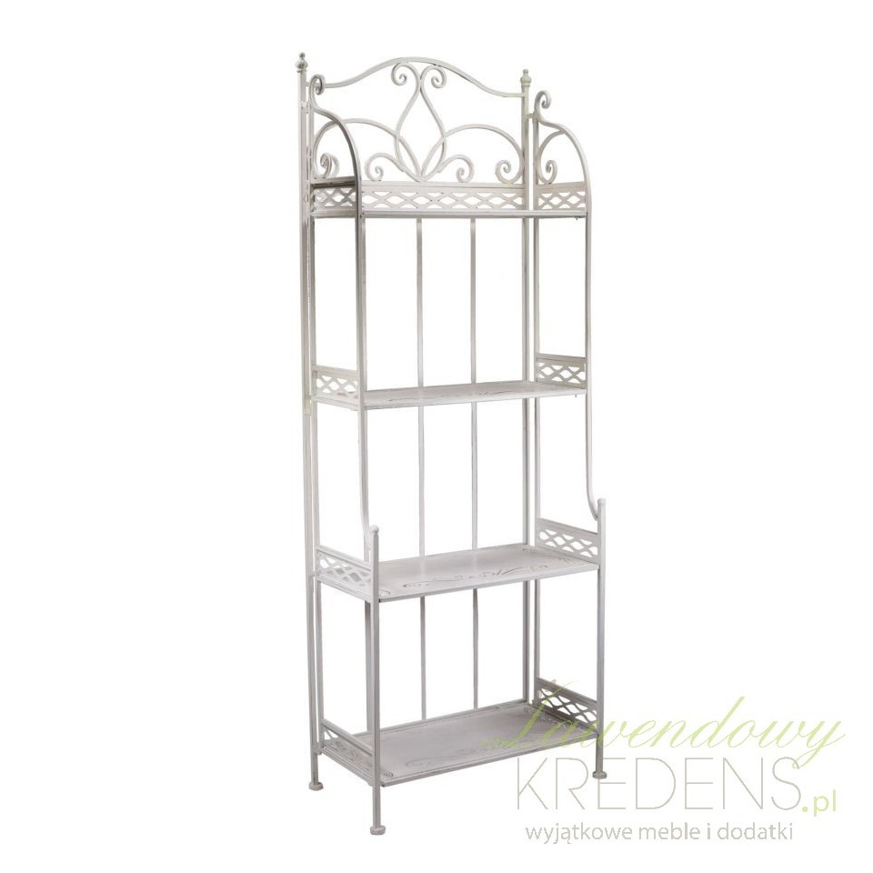 Metalowy regał prowansalski to jednocześnie interesująca dekoracja dla różnego typu wnętrz. Połączenie metalu i kompozycji ażurowych zdobień sprawia, że mebel zachwyca francuskim designem. Regał w stylu prowansalskim to prawdziwa gratka dla poszukujących idealnych mebli do wnętrz w stylu retro, shabby chic i francuskich. Ustawiony w łazience, w kuchni lub w salonie sprawdzi się w różnych rolach - tej funkcjonalnej, jako meble prowansalskie do postawienia kosmetyków i pudełek z drobiazgami lub dekoracyjnej - do wyeksponowania ramek na zdjęcia lub dekoracyjnych figurek.