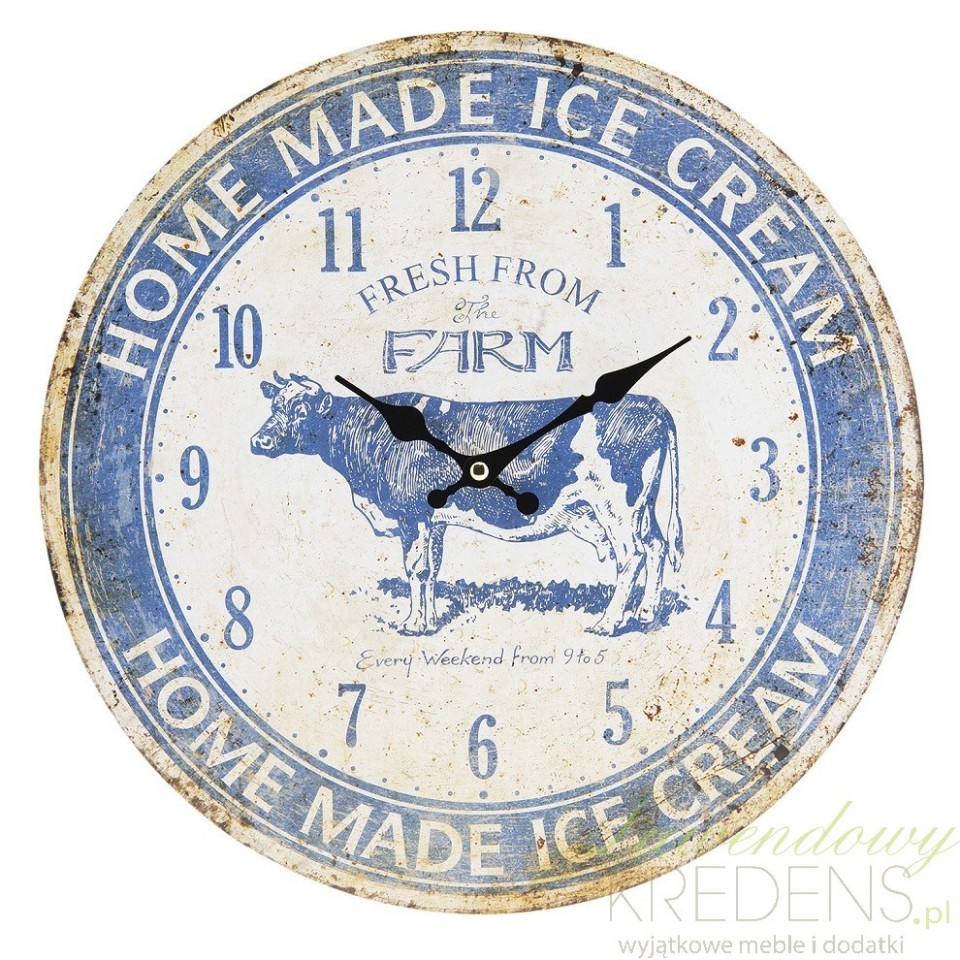 Zaaranżuj kuchnię w sielskim klimacie wykorzystując do tego zegar prowansalski. To zegar z krową w kolorze biało-niebieskim z wieloma postarzeniami, zdobiony dodatkowo napisami. Niespotykane, przykuwające uwagę zegary ścienne staną się wizytówką wnętrz stylizowanych na retro i prowansalskich. Zegary w stylu prowansalskim to trendy najbliższe naturze.