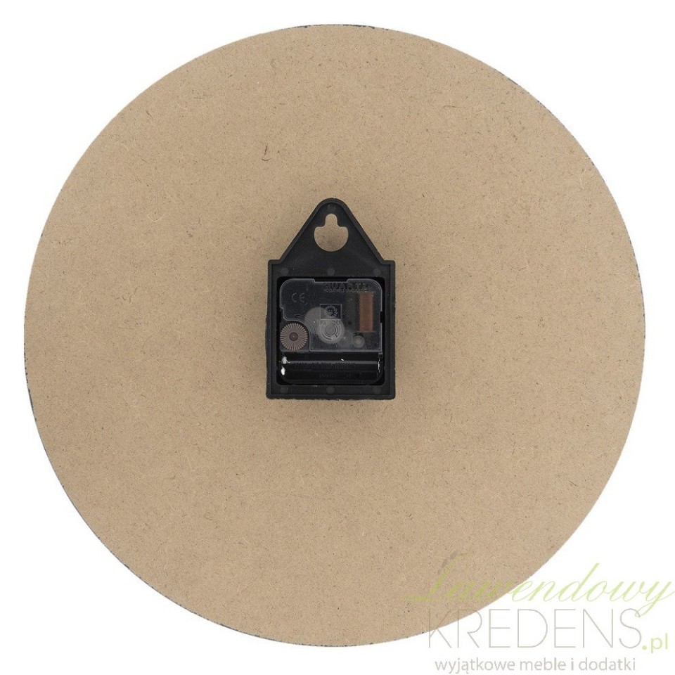 Dwukolorowy zegar prowansalski jak przystało na dodatki z tej serii został umiejętnie postarzony i wyposażony w sprawnie działający mechanizm na baterie.