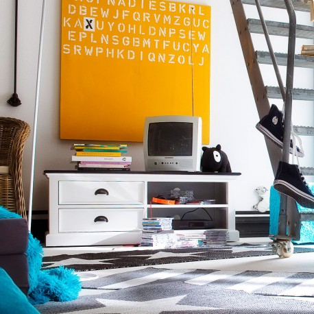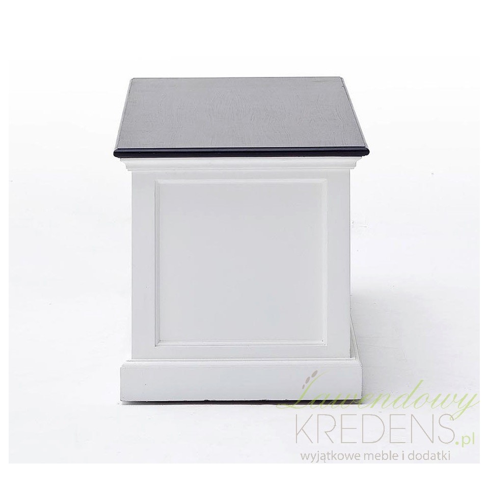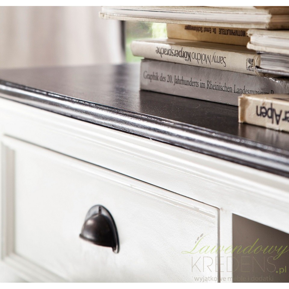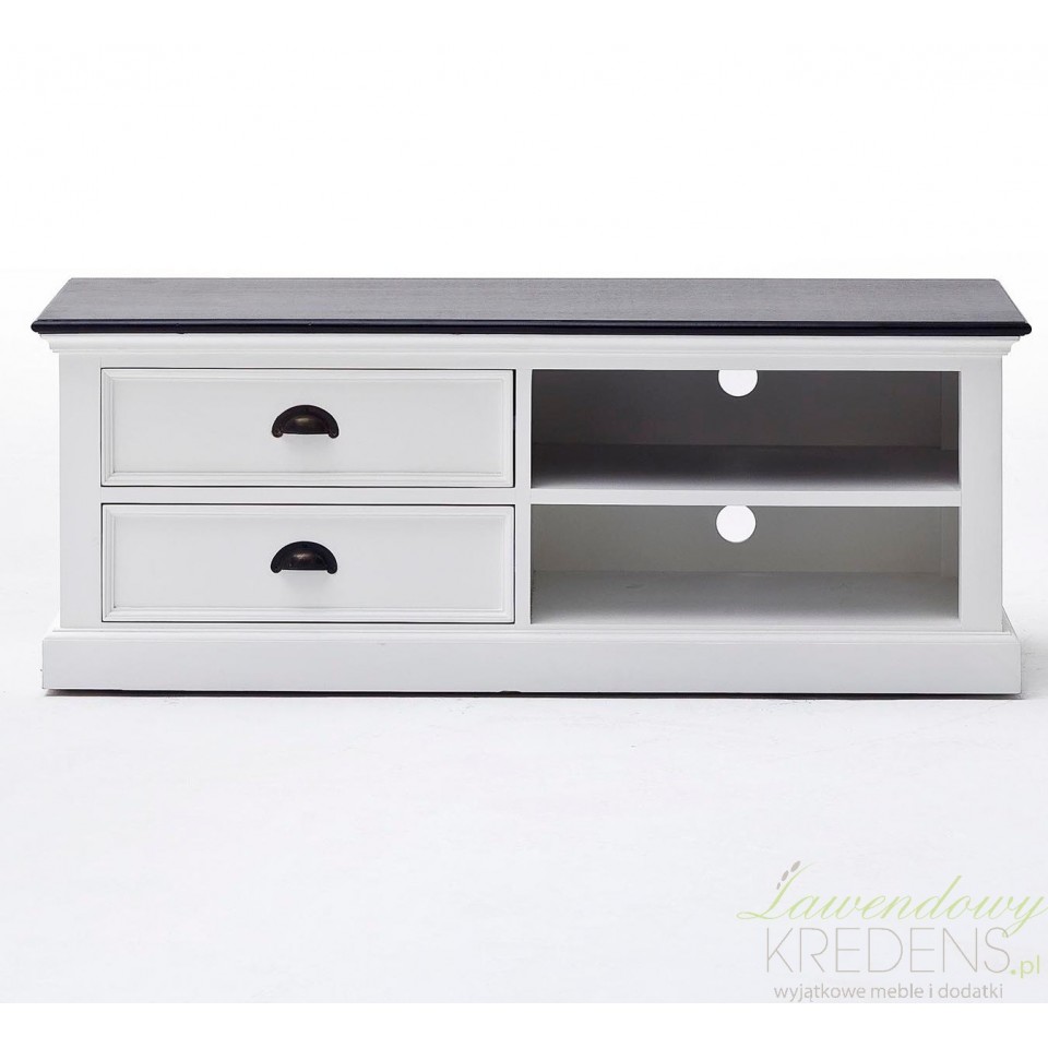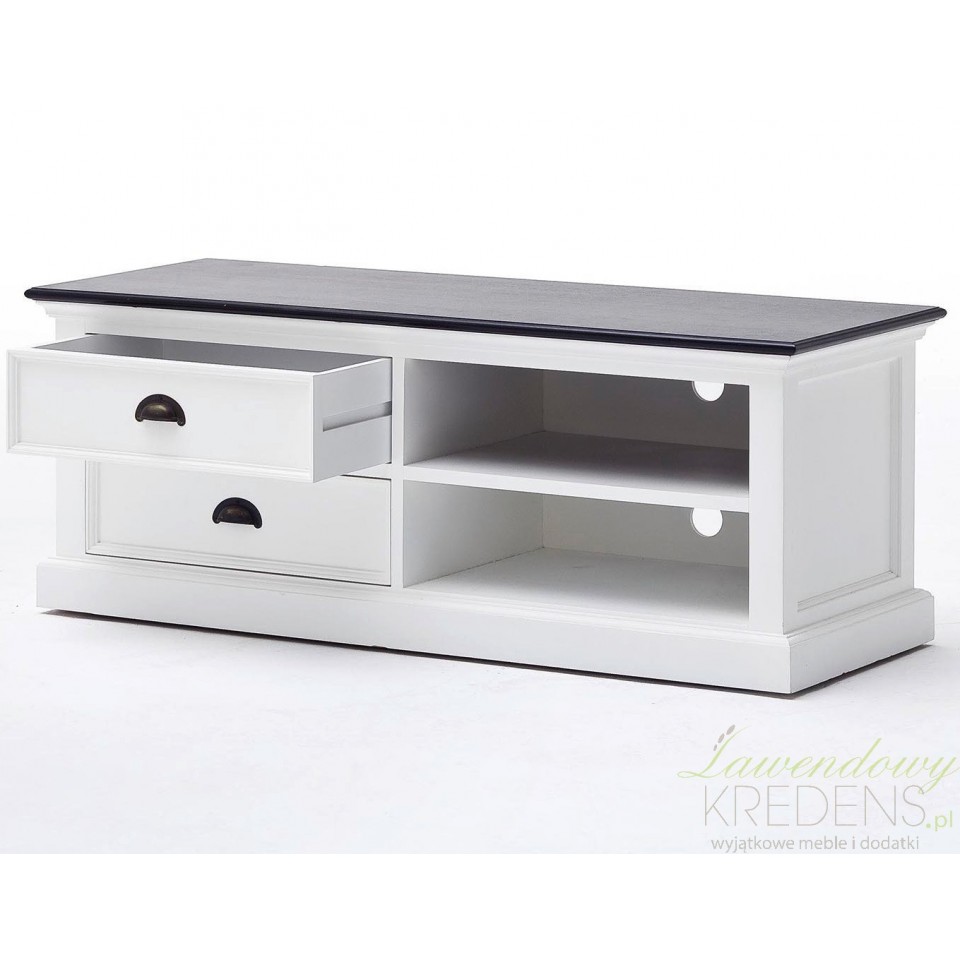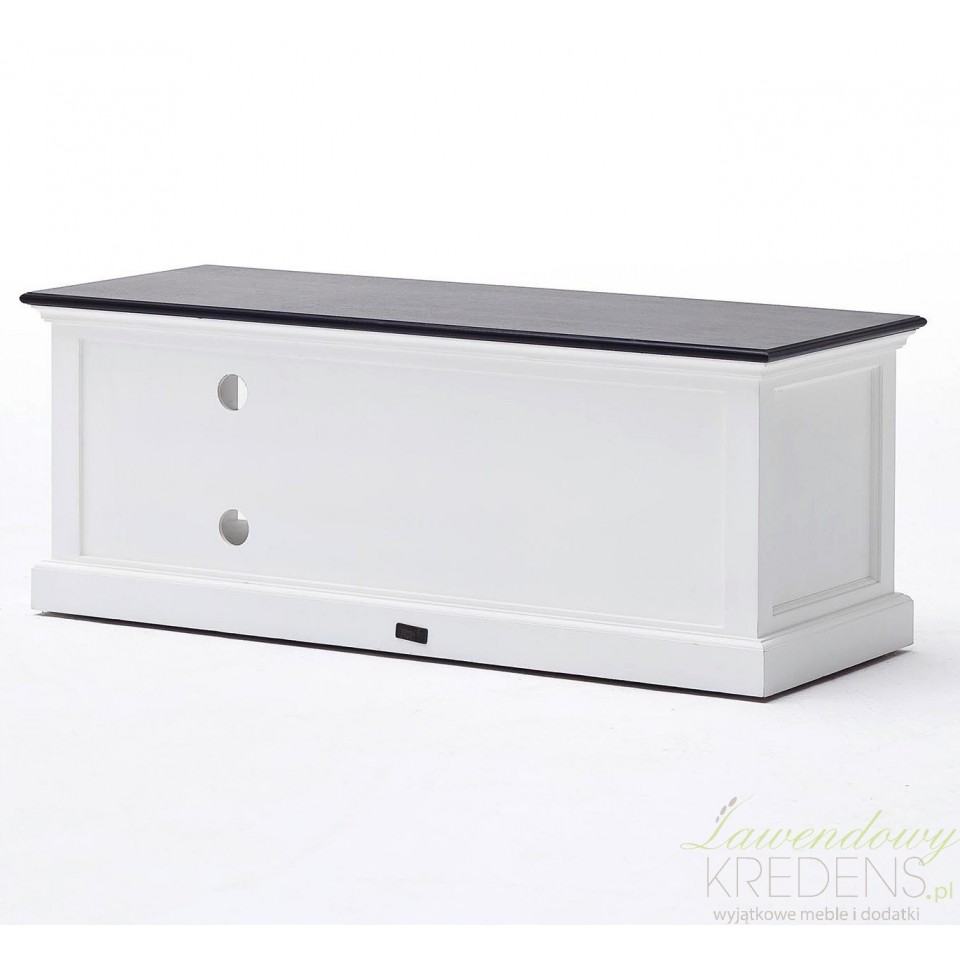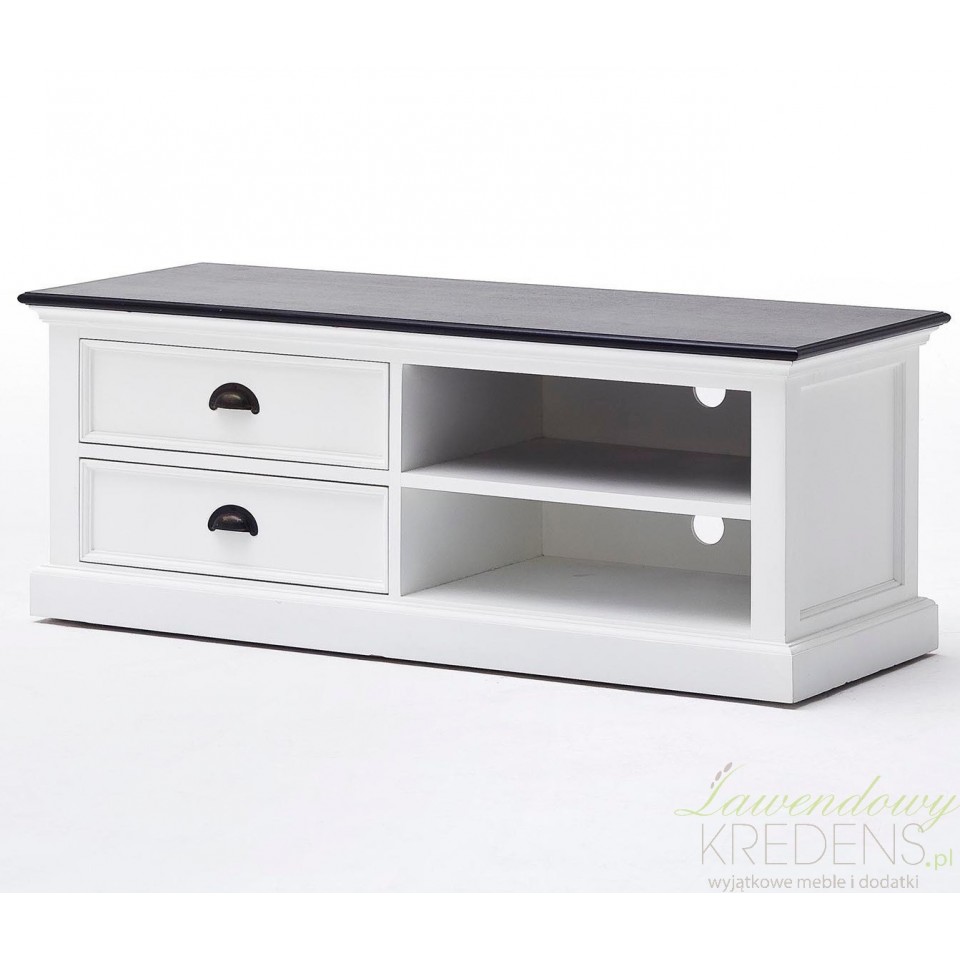 Komoda rtv w stylu prowansalskim z czarnym blatem, który połączony jest z wysokiej jakości drewnem mahoniowym fantastycznie wpisuje się w ramy stylu francuskiego. Dzięki wyważonej, eleganckiej formie i umiarze w zdobieniach - prowansalska komoda uzupełni aranżację zarówno w tradycyjnych wnętrzach, jak i tych nieco bardziej awangardowych. Tak jak wszystkie komody w stylu prowansalskim z kolekcji Lumi, komoda z czarnym blatem jest praktyczna i z powodzeniem może służyć jako mebel pod telewizor przez długie lata.