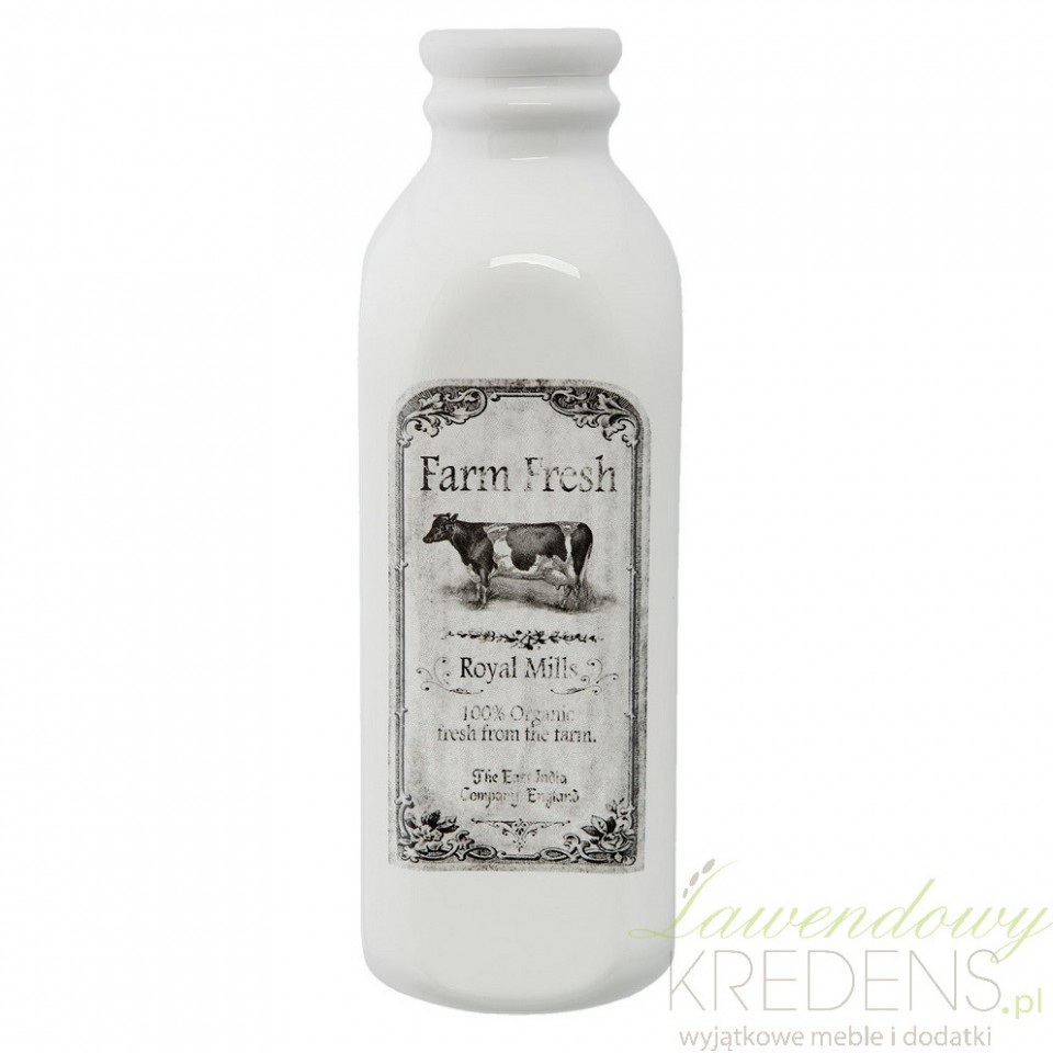 Biała butelka ozdobna z krową to sposób na wzbogacenie wyposażenia każdej kuchni urządzonej na styl prowansalski i rustykalny.