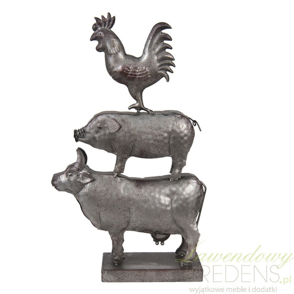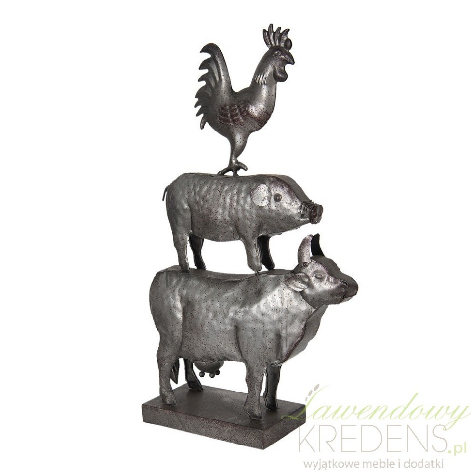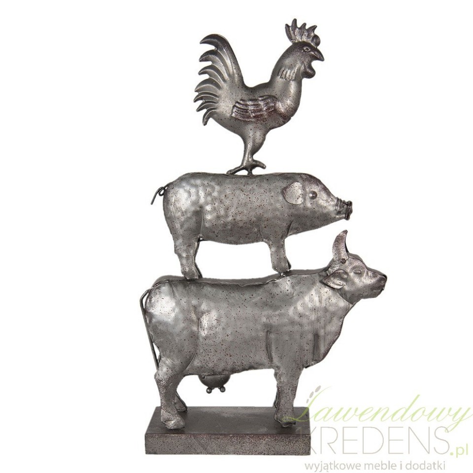 Nic dziwnego, że artykuły dekoracyjne od Clayre&Eef tak bardzo skradły Wasze serca. To jedyne dostępne na rynku figurki stylizowane na stare, a w doatku w tak oryginalnym wydaniu. Figurka ze zwierzętami przedstawia ustawione na sobie kolejno: krowę, świnię i kurę. Wykonana w całości z metalu i przymocowana do podstawy w kształcie prostokątnego klocka jest bardzo stabilna.