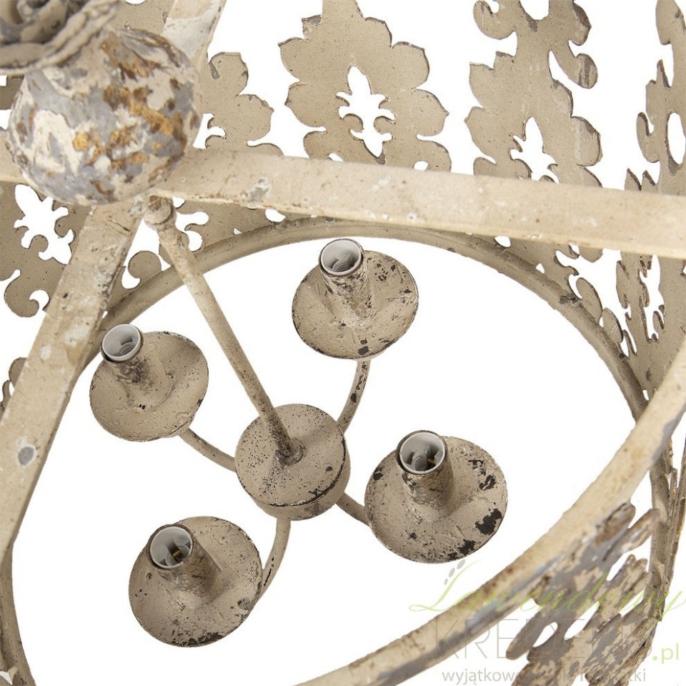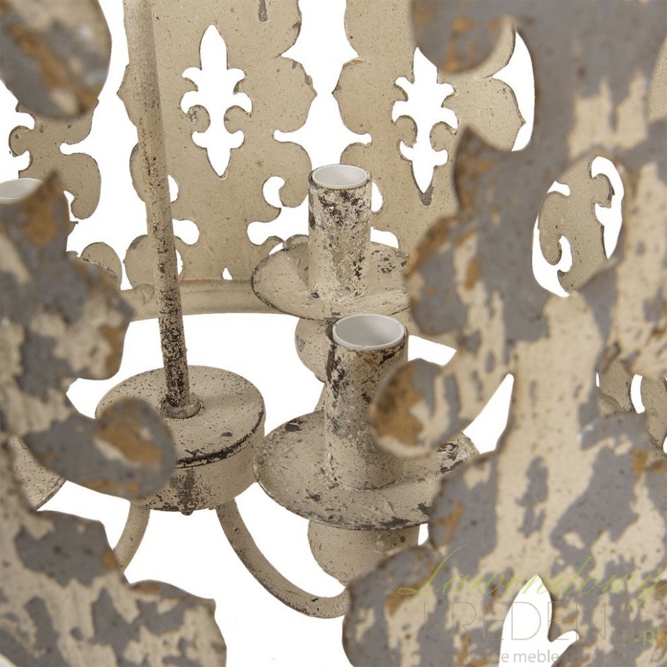 Postarzany żyrandol w stylu prowansalskim to wyjątkowy model lampy wiszącej wykonany w całości z metalu. To co go wyróżnia to forma wysokiego pierścienia z ażurowymi wykuciami przypominającymi roślinne wzory. Zawieszony na łańcuchu i wyposażony w cztery gwinty daje wiele możliwości wykorzystania we wnętrzach różnego typu. Sprawdź jak wygląda najpiękniesze oświetlenie w stylu prowansalskim od największych producentów z Polski i Europy - znajdziesz je w naszym sklepie!
