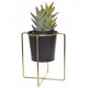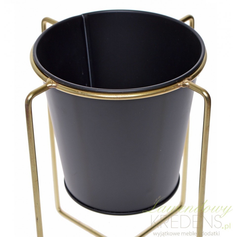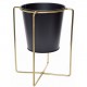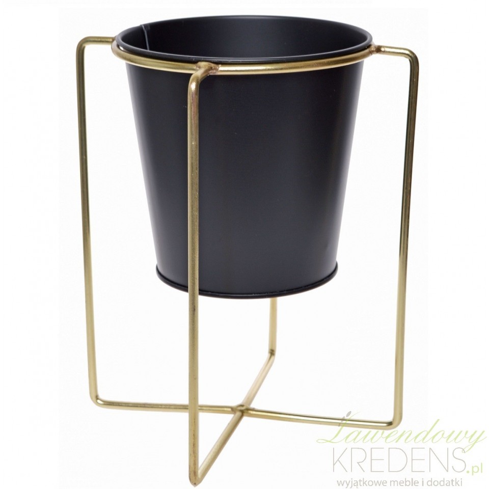 Niski, prosty kwietnik metalowy umożliwia ekspozycję jednej donicy z rośliną i zajmuje niewiele miejsca dlatego tak dobrze sprawdza się na wąskich parapetach. Wykonany z metalu, składa się z czarnej osłonki w stylu skandynawskim i prostego stelaża w kolorze złotym. Takie połączenie kolorystyczne sprawdzi się w aranżacjach, w których przewodnim motywem jest minimalizm oraz luksus. Sprawdź również inne osłonki z tej serii i daj się uwieść prostocie!
