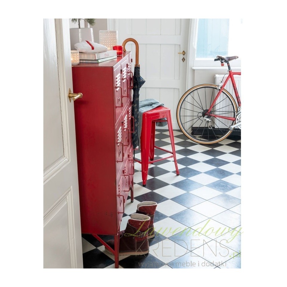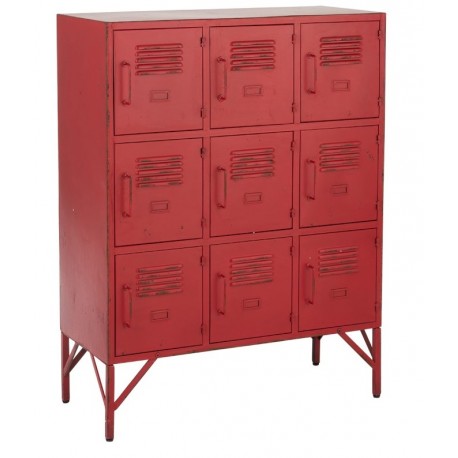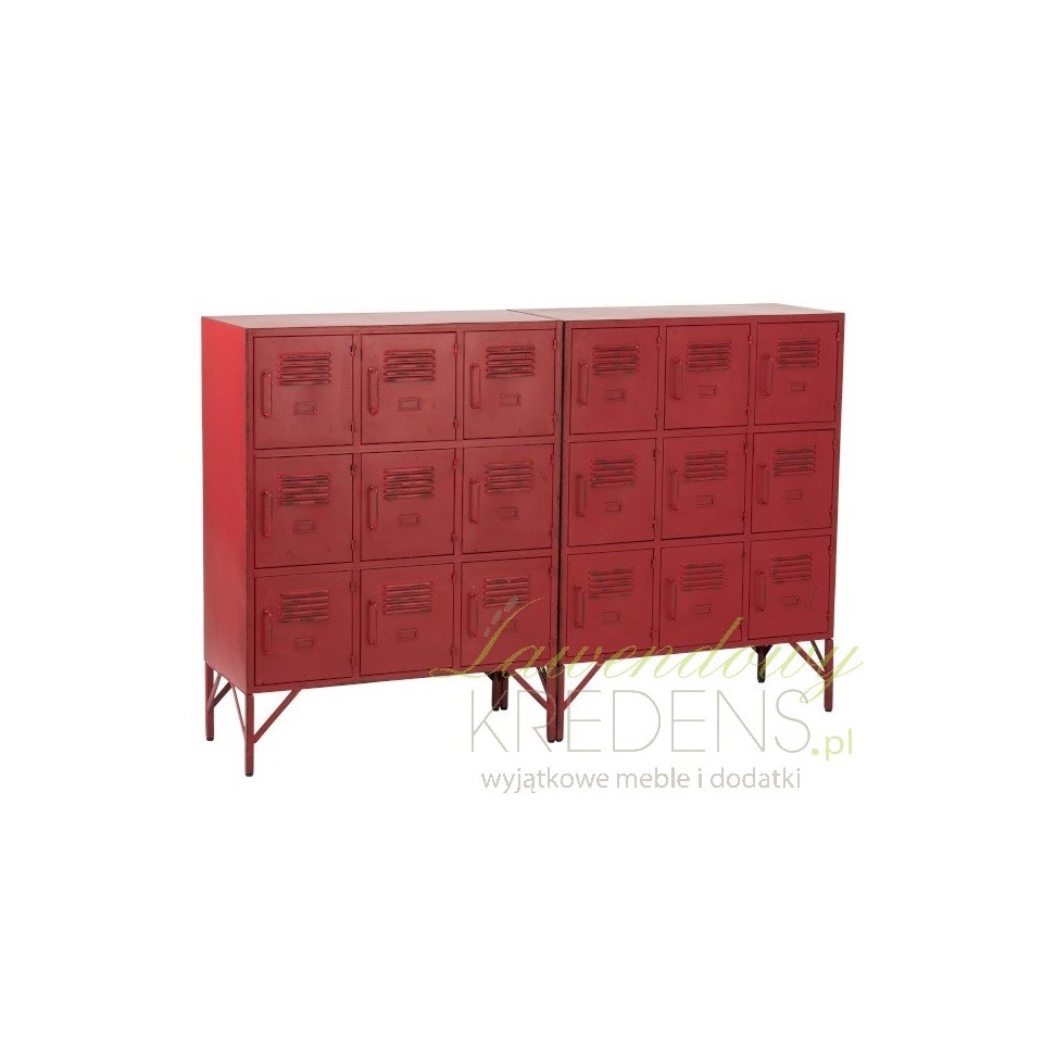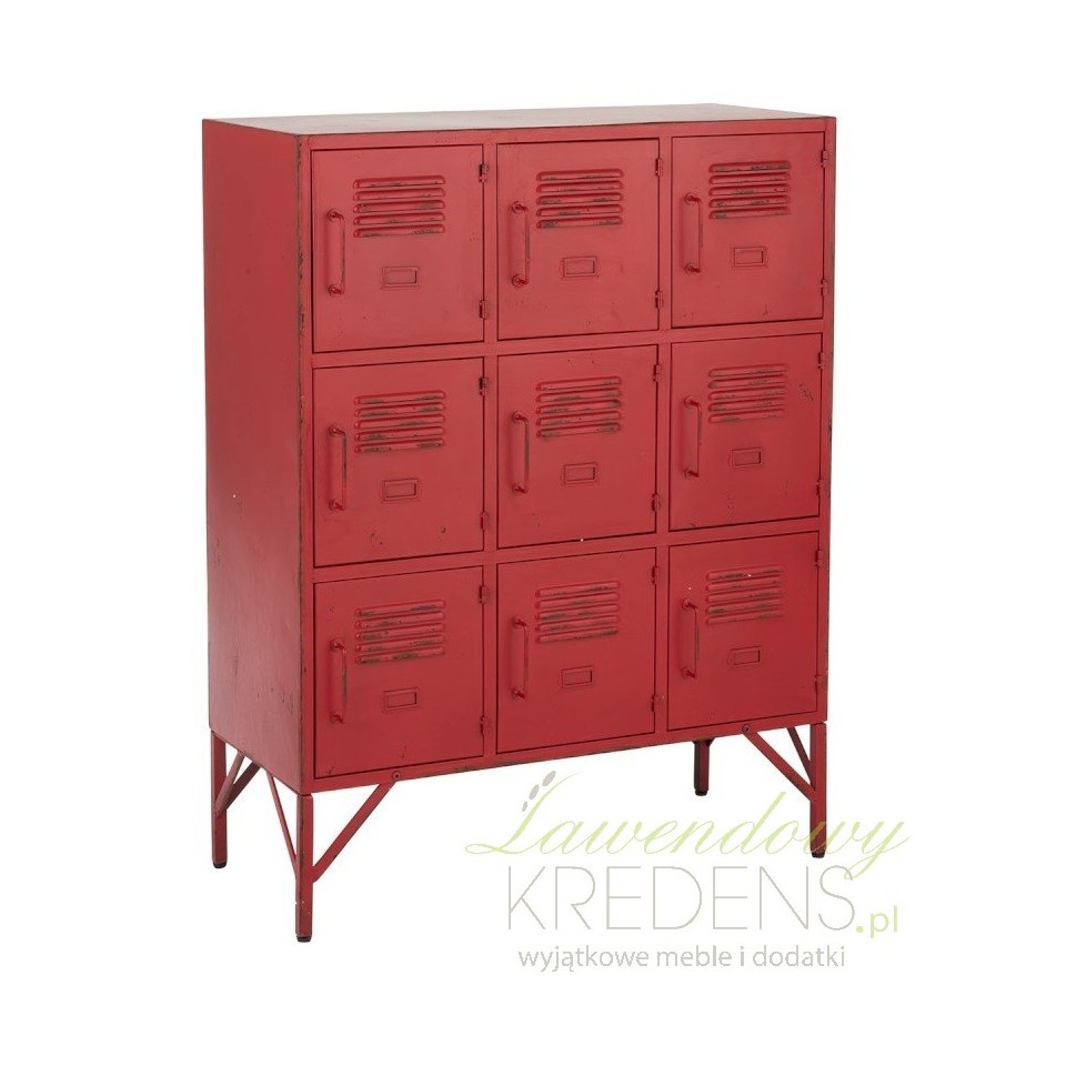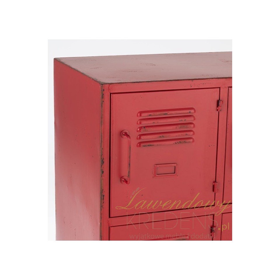 Metalowa komoda industrialna od producenta Home Decoration będzie doskonałym uzupełnieniem każdego wnętrza użytkowego, ponieważ jest przede wszystkim praktyczna, ale również pięknie wygląda za sprawą energetycznego koloru czerwieni i postarzeń. Komoda posiada dziewięć szafek z drzwiami wyposażonymi w poręczne uchwyty i metalowe żaluzje. W naszym sklepie znajdziesz również inne meble w stylu industrialnym zwracające na siebie uwagę interesujacą kolorystyką. Polecamy je do pokojów młodzieżowych, salonów, a także do designerskich łazienek.