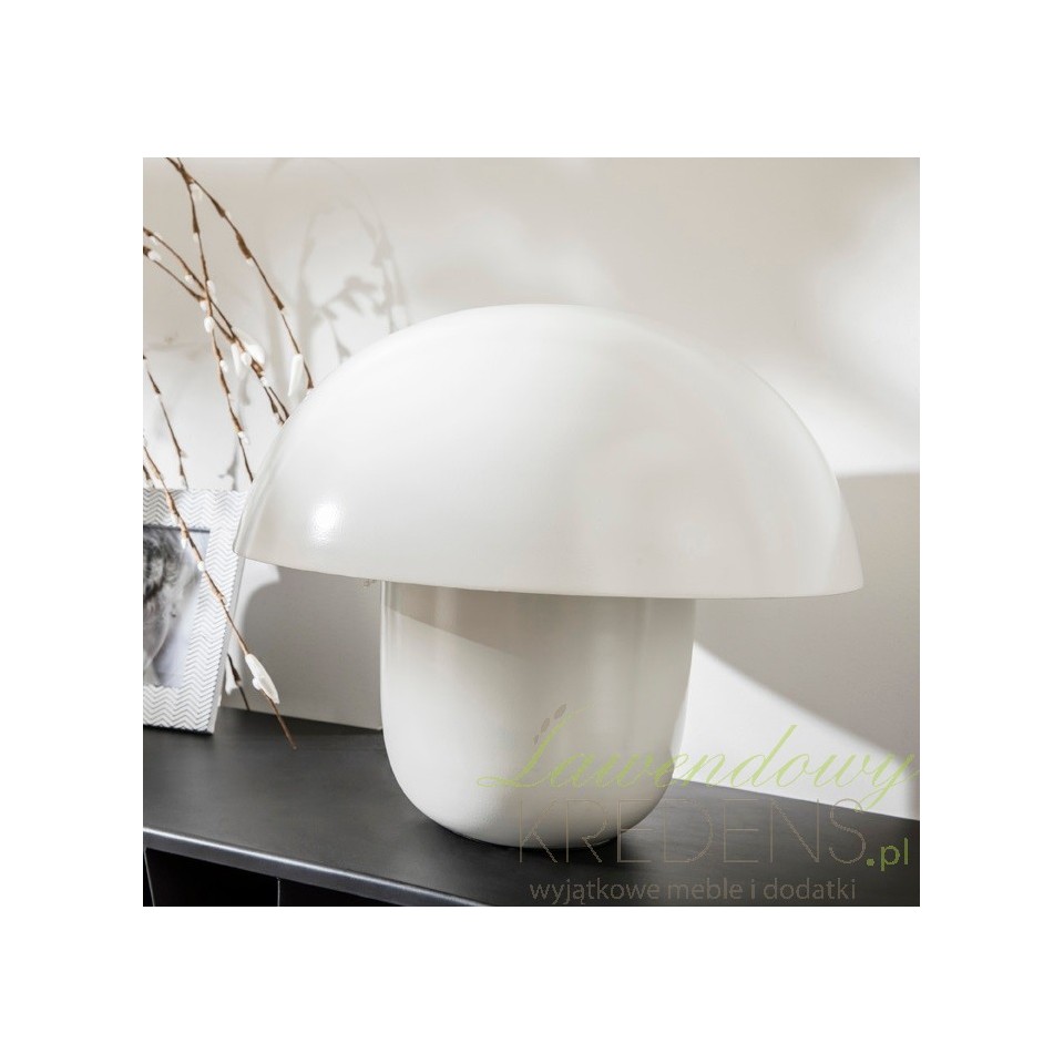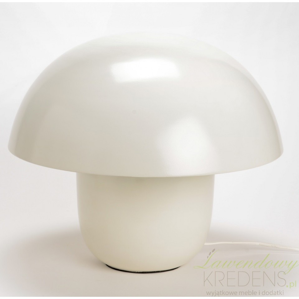 Biała lampka grzybek to prawdziwie stylowy model oświetlenia. Uwagę przykuwa kształt lampki przypominający leśnego prawdziwka. Lampka wykonana jest z metalu, a jej perłowy kolor sprawia, że prezentuje się niezwykle elegancko w każdym ze współczesnych wnętrz. Pod półokrągłym kloszem znajduje się miejsce na jedną żarówkę.