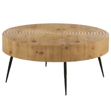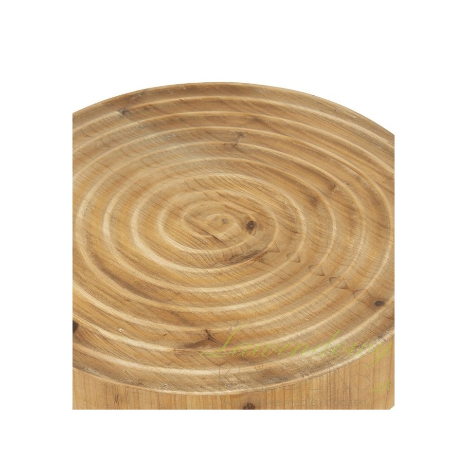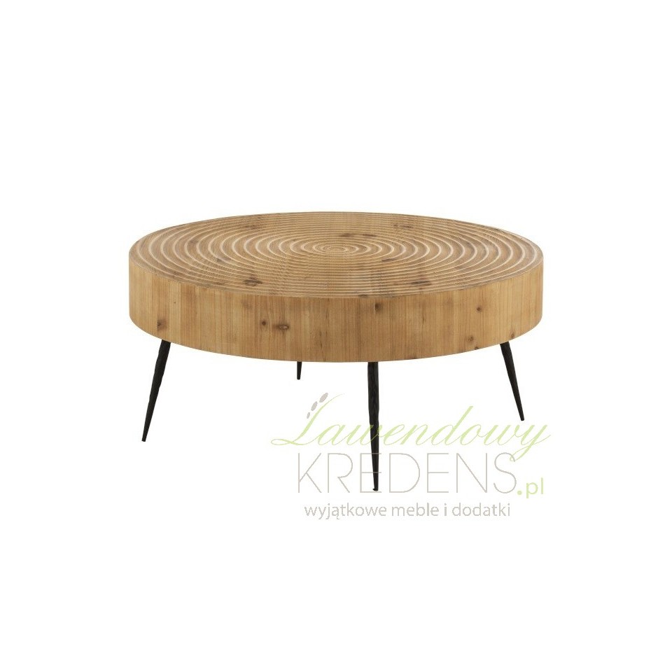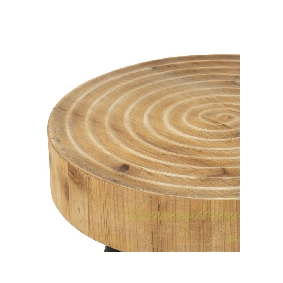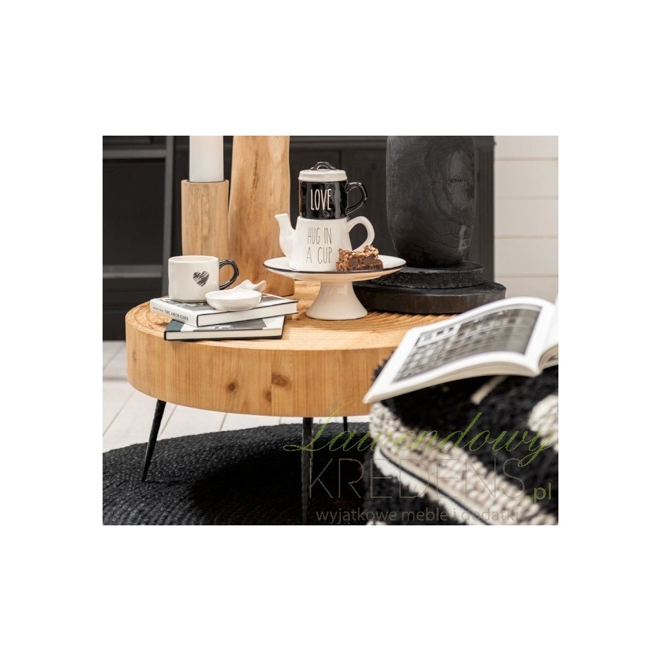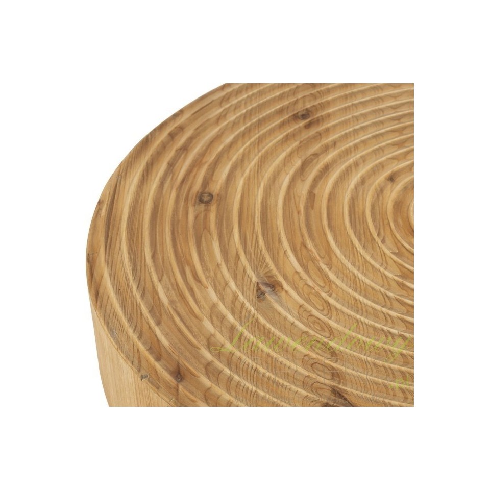 Okrągły stolik kawowy z grubym i masywnym blatem, wyglądającym jak precyzyjnie wycięty pieniek starego drewna. Dostępny także w mniejszym rozmiarze!