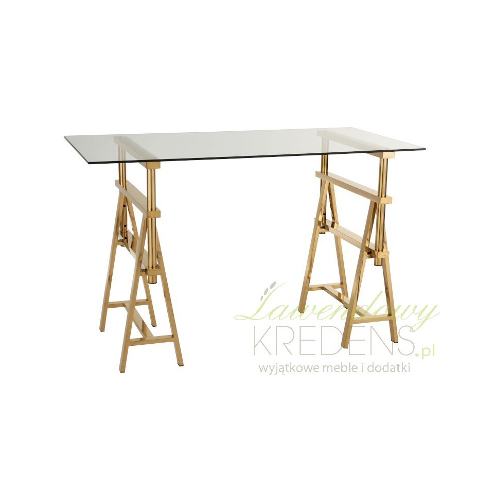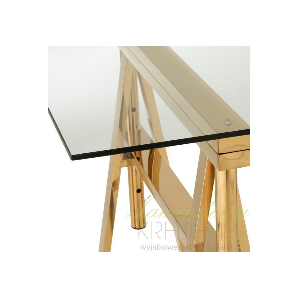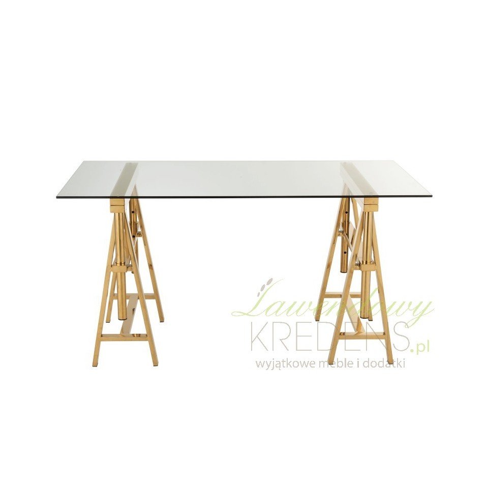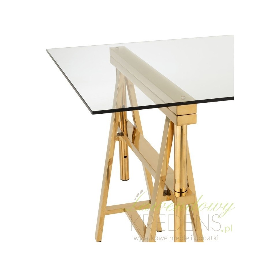 Złoty stół ze szklanym blatem to genialny mebel do jadalni i dużej kuchni. Dobierz do niego szklane lub metalowe krzesła!