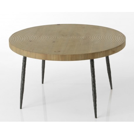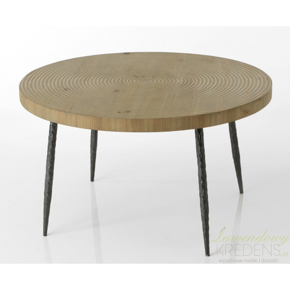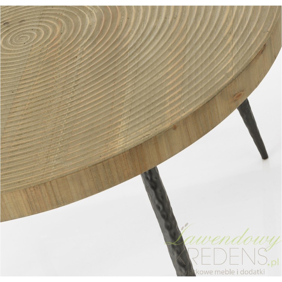 Meble w stylu industrialnym oprócz zalet wynikających z jakości wykonania docenisz również za prostą i nowoczesną formę. Okrągły stolik kawowy z drewnianym blatem na czterech metalowych nogach posiada ciekawą, regularną fakturę na górnej powierzchni. Dużym plusem jest odpowiednie dla stylu loftowego połączenie kolorów i adekwatna do jakości cena produktu.