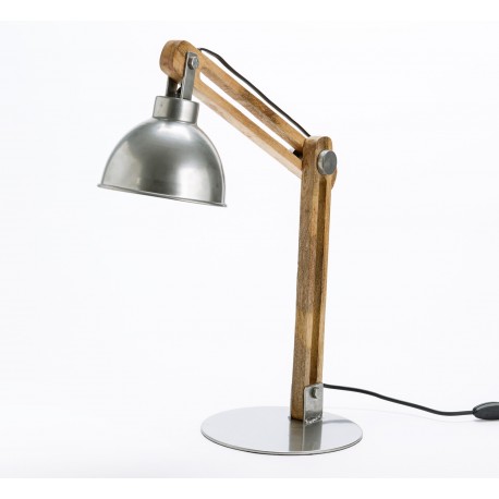 Lampa biurkowa to wysokiej jakości element oświetlenia z sieciowym zasilaniem. Lampka zbudowana jest z metalowej podstawy i metalowego klosza w kolorze srebrnym, które łączy ze sobą drewniana noga. Świetnie nadaje się jako podstawowe oświetlenie miejsca pracy przy biurku, ale także jako lampka nocna do sypialni. Dzięki szerokim możliwościom regulacji wysokości lampy uzyskasz pożądane natężenia światła.