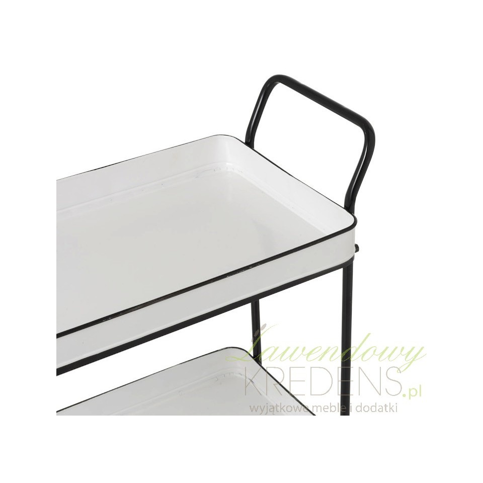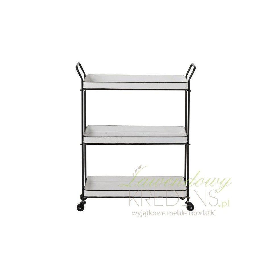Metalowy stolik w stylu industrialnym to mebel, którego głównym atutem są półki z wysokim rantem i cztery kółka. Ten mobilny mebel sprawdzi się świetnie jako wózek kelnerski ale także jako półki na książki. Dzięki dwóm uchwytom po bokach będziesz mógł bez problemu przestawiać go z miejsca na miejsce. Industrialne meble z naszego sklepu zaskoczą każdego, kto stawia na funkcjonalność!