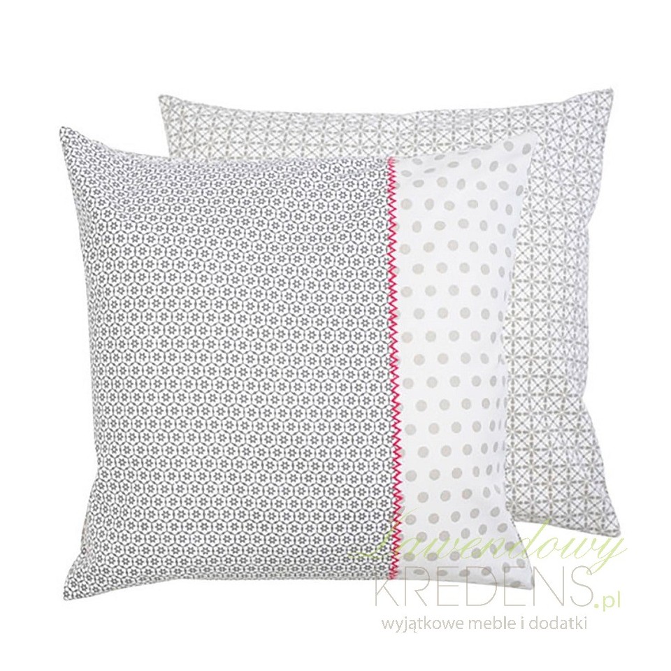 Starannie wykonane poszewki ozdobne na poduszki uszyte z bawełny to artykuły dekoracyjne, które przygotowała specjalnie dla Twojego domu - marka Clayre&Eef. Kwadratowa poszewka ma jasny kolor i po obu stronach jest zdobiona szarymi wzorkami. Na przedniej stronie dodatkowo znajduje się czerwone przeszycie. Wykorzystaj ją na sofie w jadalni, w salonie lub na łóżku w sypialni.