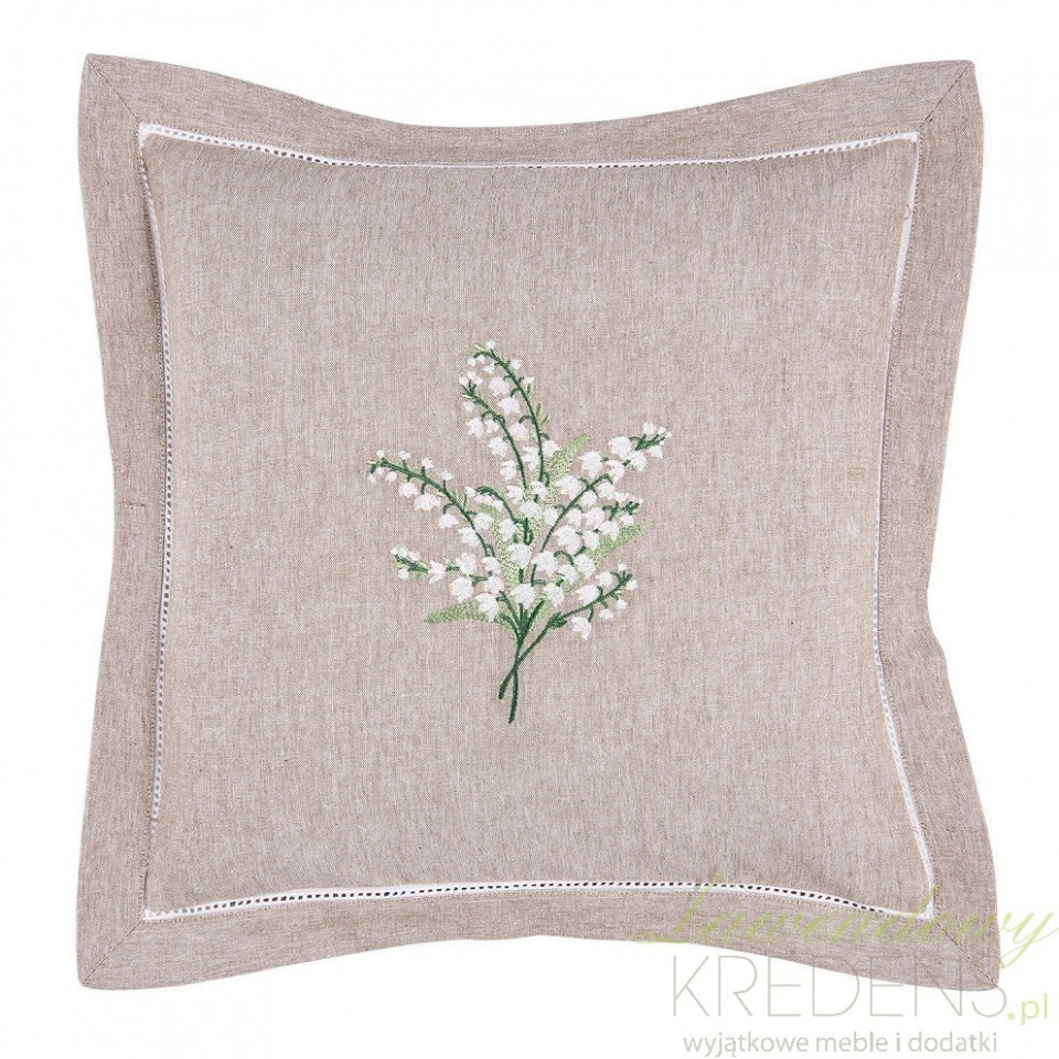 Beżowa poszewka z konwalią świetnie komponuje się z różnego typu narzutami i innymi poszewkami z kolekcji Clayre&Eef.