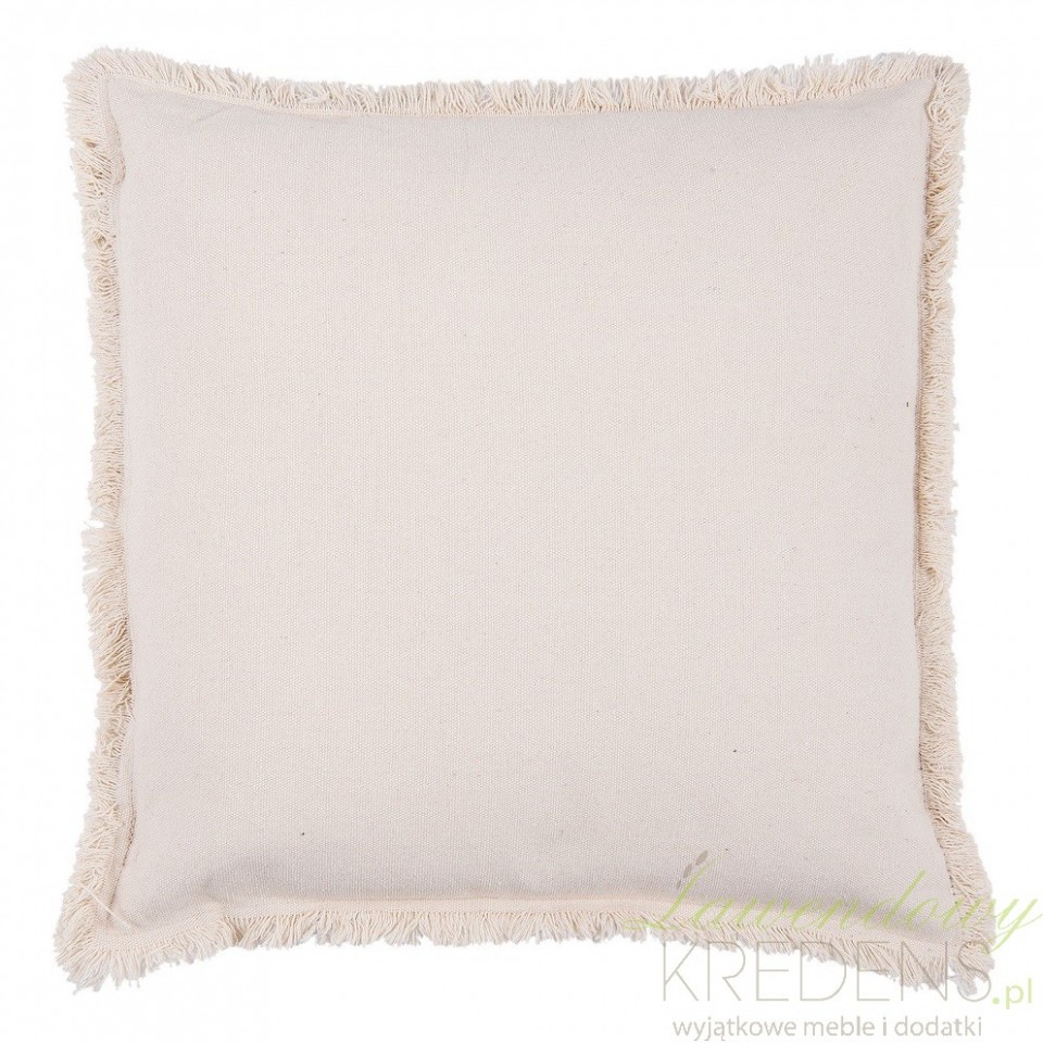 Praktyczna, ozdobna poduszka z krótkimi frędzlami dookoła robi wrażenie. Pasuje do salonu na jasną kanapę lub do pokoju gościnnego.
