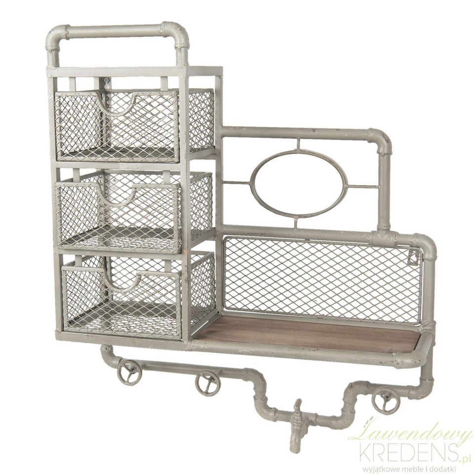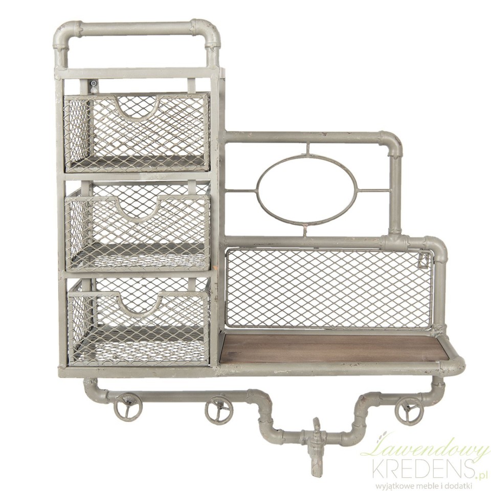 Półka z koszami i lusterkiem w stylu industrialnym została wykonana z drewna i metalu w kolorze szarym i wzbogacona o ciekawe elementy imitujące instalację hydrauliczną. Szafki ścienne i półki ścienne z oferty Clayre & Eef to prawdziwe arcydzieła dla Twojej przestrzeni wewnętrznej. Szara półka z drewnem będzie idealna do wyeksponowania cenionych zdjęć i pięknych roślin doniczkowych, jak również do przechowywania bibelotów. Styl industrialny nie jedno ma oblicze, przekonaj się o tym robiąc zakupy w naszym sklepie!