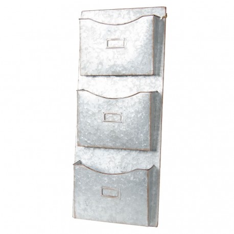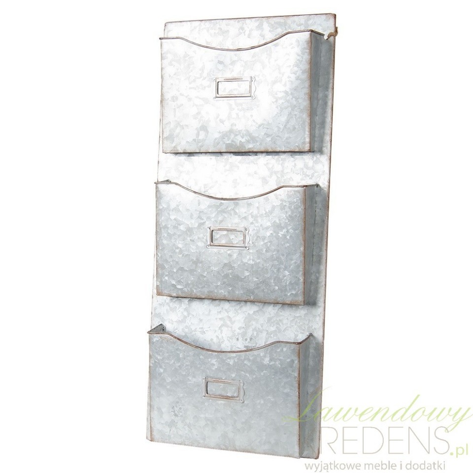 Metalowy organizer ścienny wykonany z trwałego metalu składa się z trzech przegródek, które dzięki okienkom możesz oznaczyć według własnego uznania - napisem lub numerem.