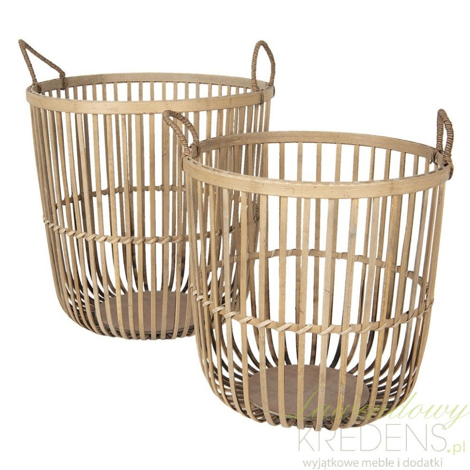 Wykonane z usztywnionych włókien bambusowych praktyczne kosze bambusowe przydadzą się w każdym domu, aby utrzymać różne przedmioty w jednym miejscu. Oba kosze wyposażono w uchwyty ze sznura. Te funkcjonalne pojemniki przydadzą się do przechowywania zabawek w pokoju dziecka lub gazet w salonie. Dwa kosze z bambusa to propozycja od holenderskiej marki Clayre&Eef.