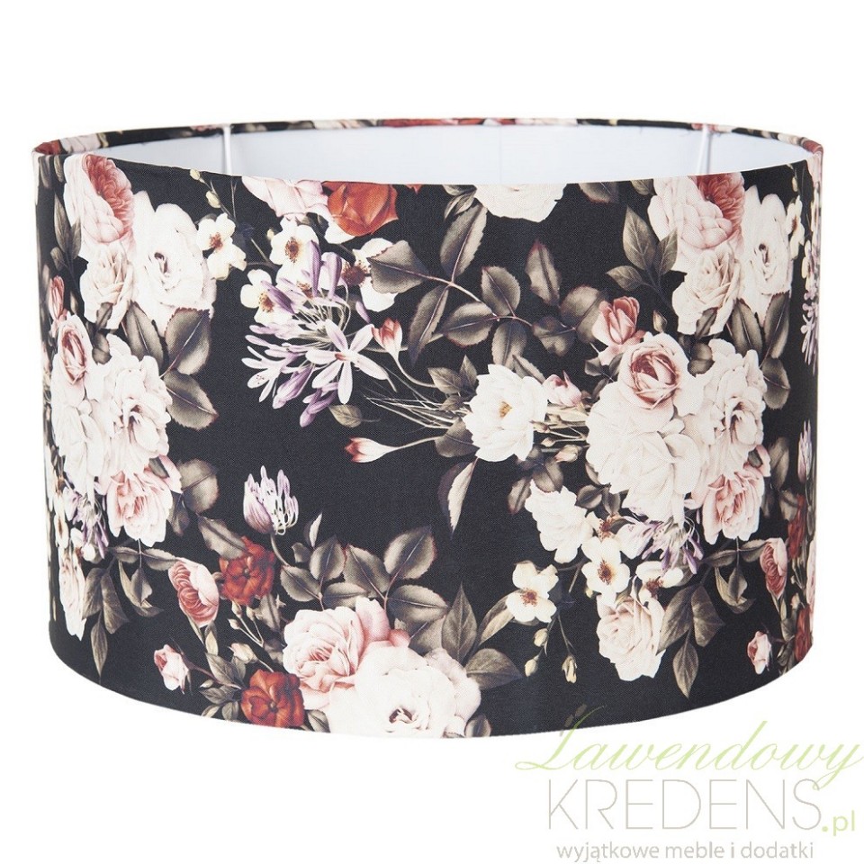 Jesteś miłośniczką kwiatowych wzorów we wnętrzu? Dekorując dom dbasz o to by znalazły się w nim naturalne motywy? Abażur w liście z kolekcji Clayre&Eef w kolorze czarnym z jasnymi, dużymi kwiatami jest okrągły i posiada dodatkową, metalową konstrukcję ułatwiającą mocowanie na lampce. Zdecydowany kolor, prosty kształt i niebanalny wzór najlepiej odnajdą się w aranżacjach prowansalskich i retro.