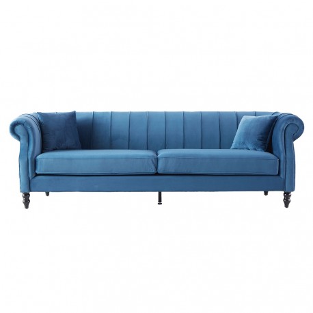 Niebieskie sofy od Clayre&Eef znajdziesz w naszym sklepie. Są dostępne w dwóch rozmiarach, obie wyposażone w dwie poduszki wzmacniające komfort Twojego wypoczynku.