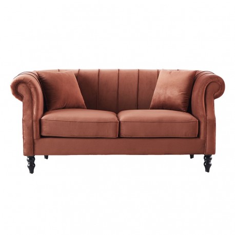 Piękna, stylowa i funkcjonalna sofa obita przyjemną w dotyku tapicerką w kolorze rudym, to mebel, nad którego produkcją pieczę sprawuje znana marka holenderska Clayre&Eef.