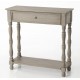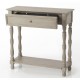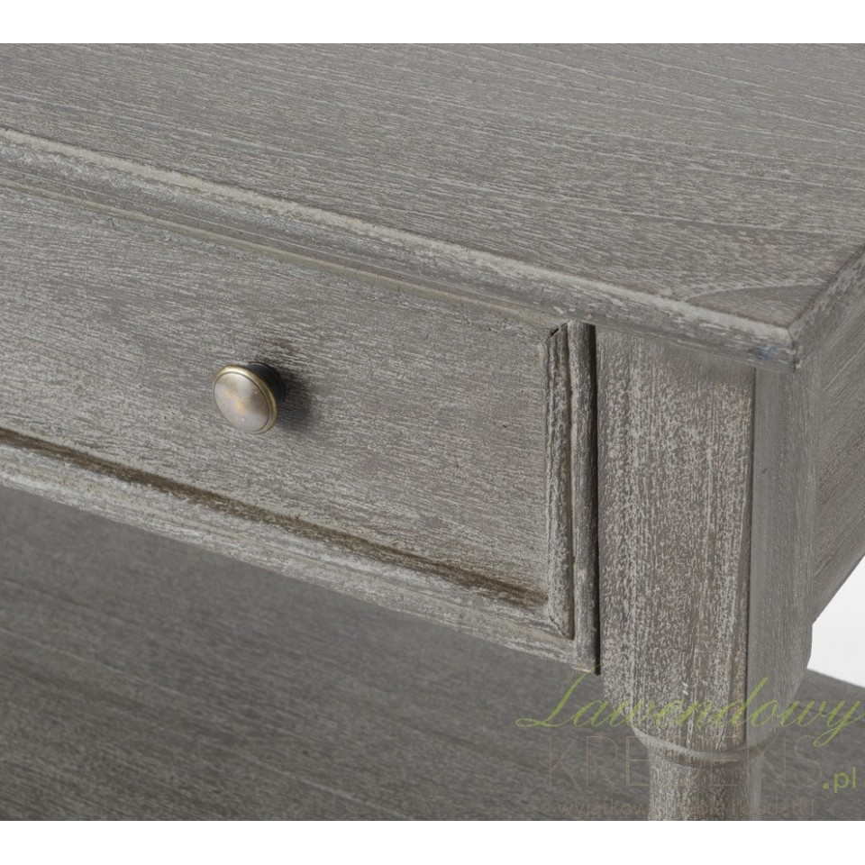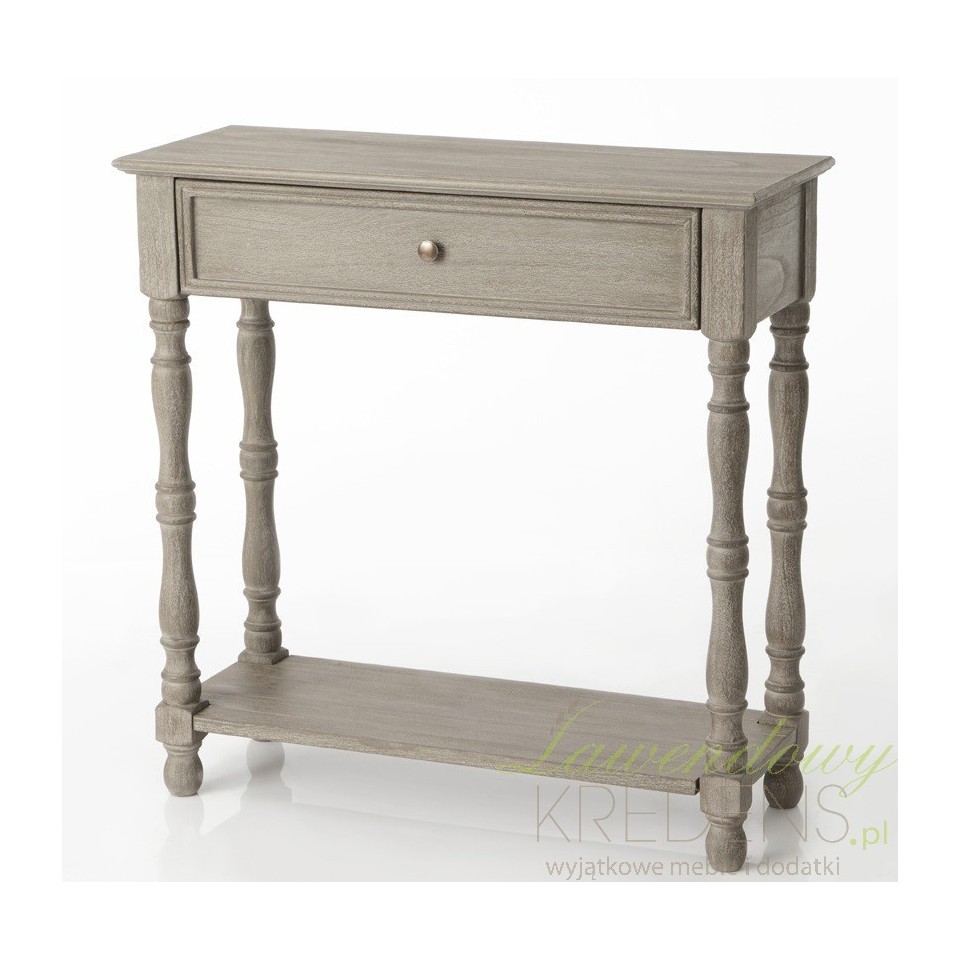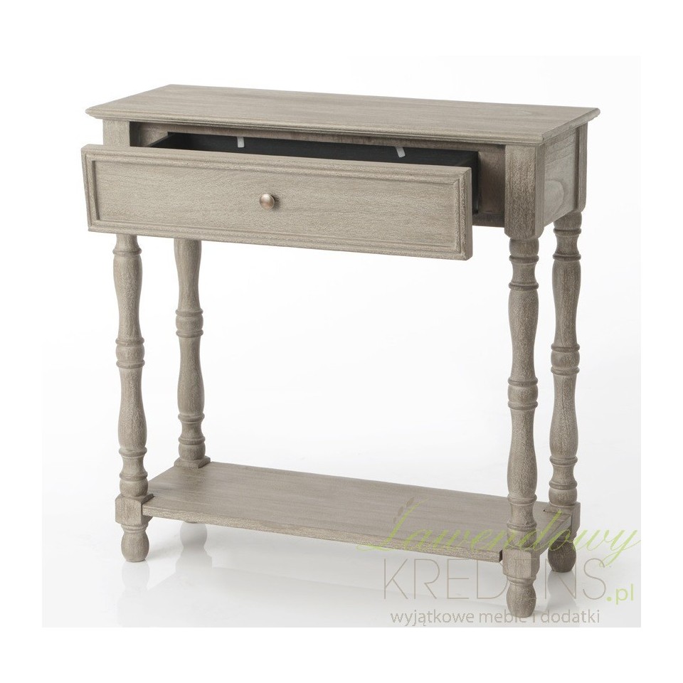 Praktyczne wymiary jakie ma bielona konsola w stylu prowansalskim pozwalają rozgościć się temu elementowi wyposażenia wnętrza w wielu miejscach. Konsola posiada jedną, ale za to bardzo dużą szufladkę ze skromnym uchwytem z metalu w formie niewielkiej gałki. Za funkcjonalność tego mebla odpowiada również półka zamontowana kilka centymetrów nad ziemią, a za prowansalski design - bielenia i rzeźbione nogi.