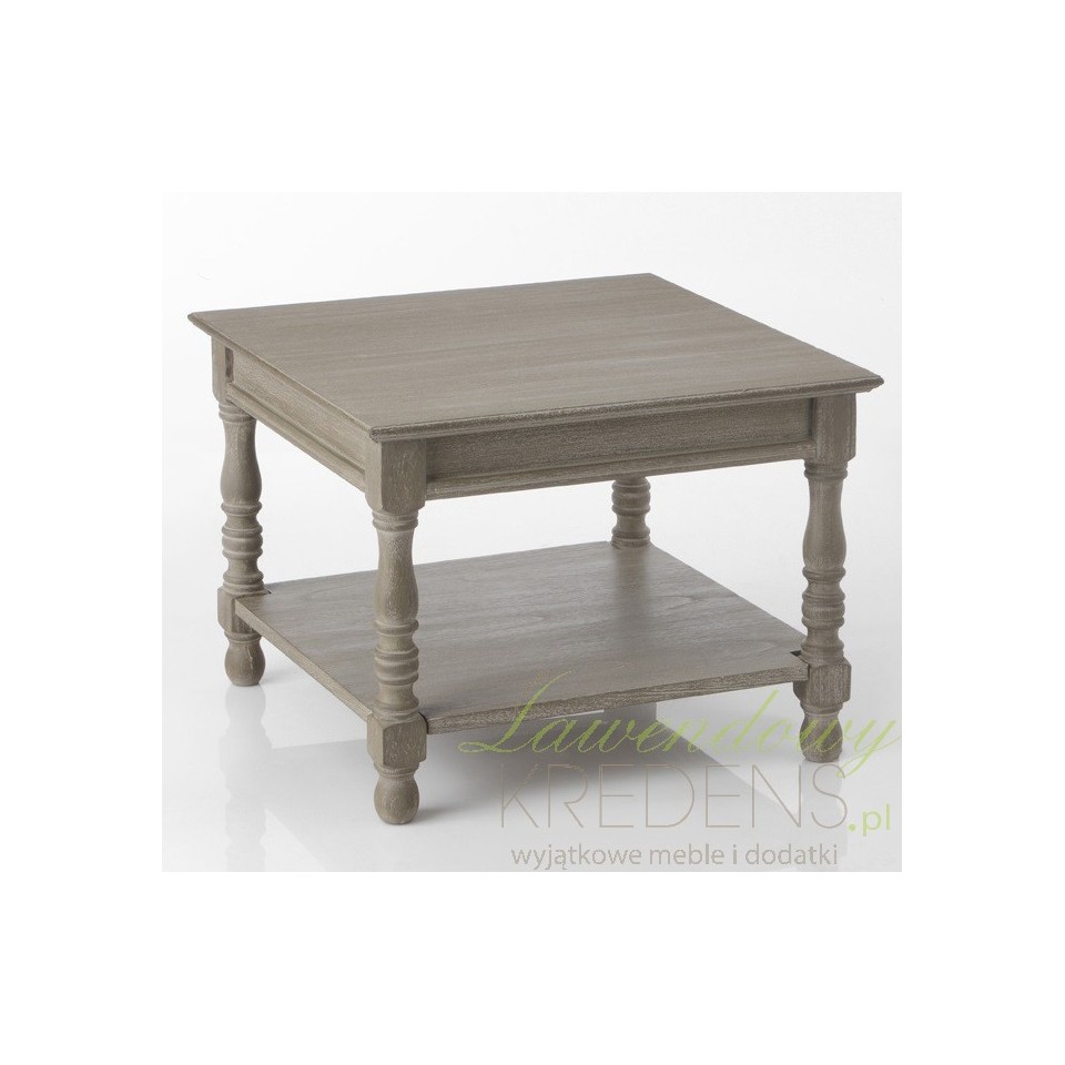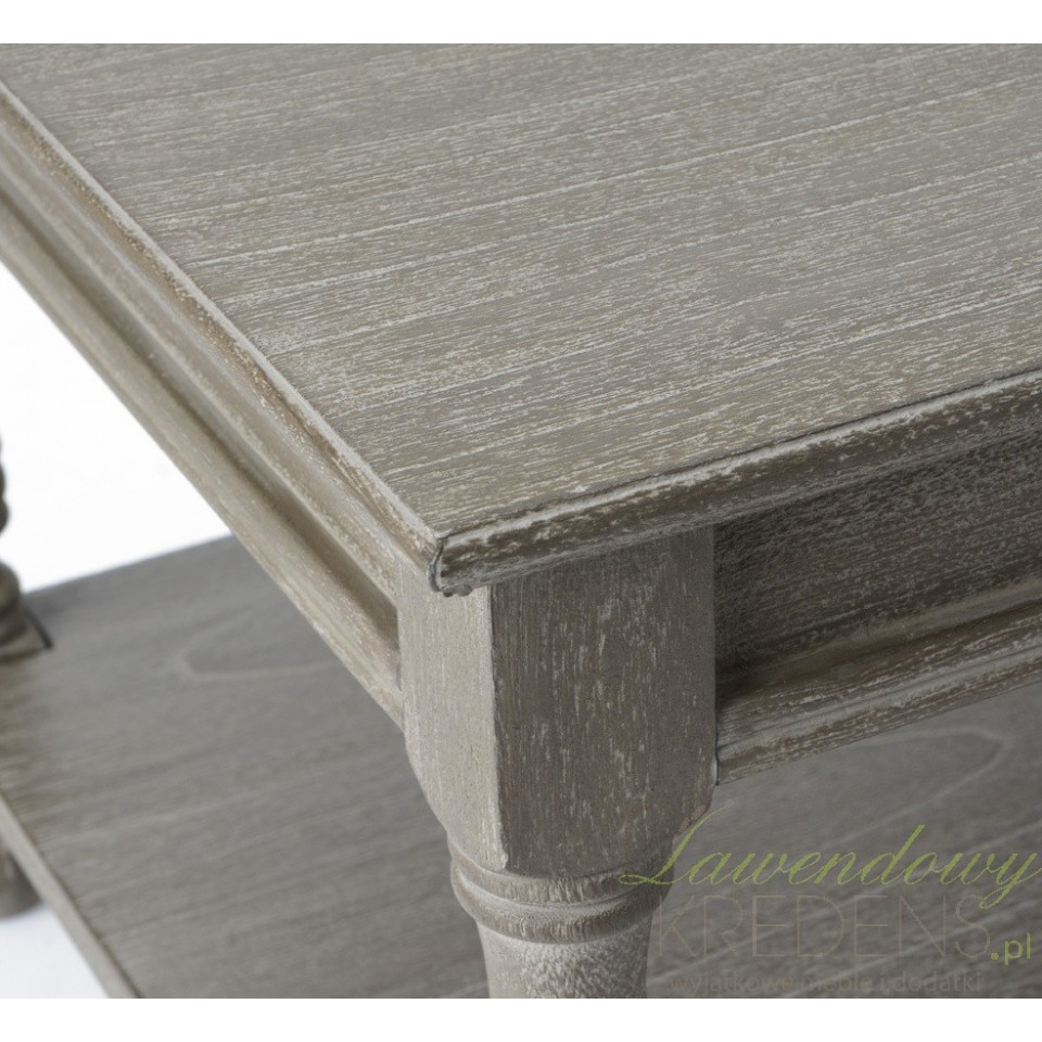 Stwórz niebanalną aranżację w swoim salonie dzięki meblowi, jakim jest stolik kawowy w stylu prowansalskim. Blat, nogi i cokół wykonane są z drewna w szarym kolorze i wprowadzają do wnętrza francuską aurę. Stolik prowansalski sprawdzi się głównie w pomieszczeniach o ograniczonej powierzchni, przyciągając uwagę swoimi kuliście rzeźbionymi nogami. Zarówno blat, jak i funkcjonalna półka mogą służyć jako miejsce do odkładania niezbędnych przedmiotów i eksponowania ulubionych dekoracji.