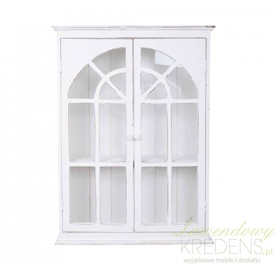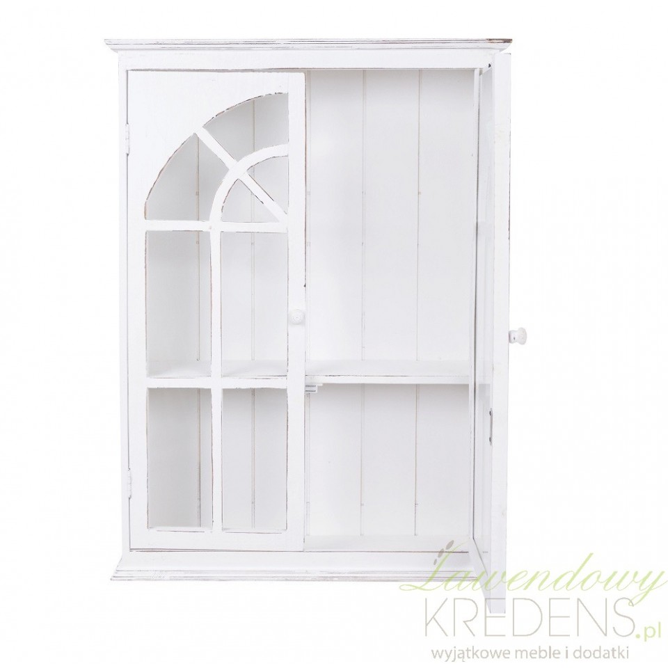 Stylowa 2- drzwiowa szafka ścienna do przechowywania różnego rodzaju przedmiotów w kuchni i nie tylko. Całość wykonana w białym kolorze, zdobiona stylowymi przecierkami. Fronty drzwiczek zaprojektowano na wzór prowansalskiej okiennicy. Funkcjonalność mebla wzmacnia pojedyncza półka wewnątrz i okrągły uchwyt. Szafka w stylu prowansalskim doskonale będzie pasowała do aranżacji francuskich, tradycyjnych i pełnych klasy. Nada pomieszczeniom uroku.