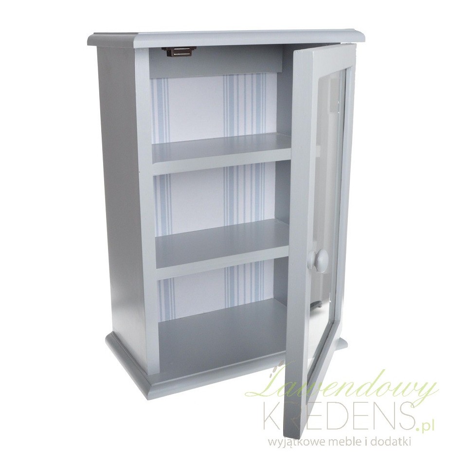 Szafka ścienna z dwoma półkami to oryginalny produkt dla osób ceniących we wnętrzach prostotę, lekkość i funkcjonalność. Szafka prowansalska znajdzie zastosowanie w pomieszczeniach takich jak: łazienka, kuchnia i pokój dziecięcy. Drzwi szafki zostały przeszklone, co umożliwia ustawianie wewnątrz dekoracji i piękne ich zaprezentowanie. Wielość zastosowań tego mebla wynika z jego uniwersalnej kolorystyki i prostej budowy. Gustowne odcienie szarości to trend, który aktualnie zyskuje popularność w wystrojach współczesnych wnętrz.