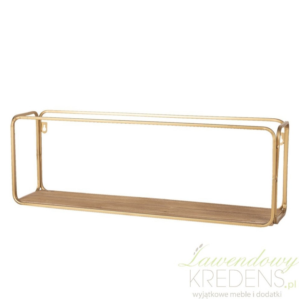 Oryginalna półka ścienna wykonana z metalu i drewna. Złota półka łączy w sobie surowość materiału oraz elegancką kolorystykę. To stylowy element wyposażenia wnętrza o industrialnym designie. Zachwyci Cię lekkością formy i wieloma możliwościami wykorzystania w każdym wnętrzu - nadaje się do kuchni, łazienek i biur. Złote półki fantastycznie zaprezentują się w nowoczesnych wnętrzach i zapewnią dodatkowe miejsce pod książki, ramki na zdjęcia czy kwiaty.