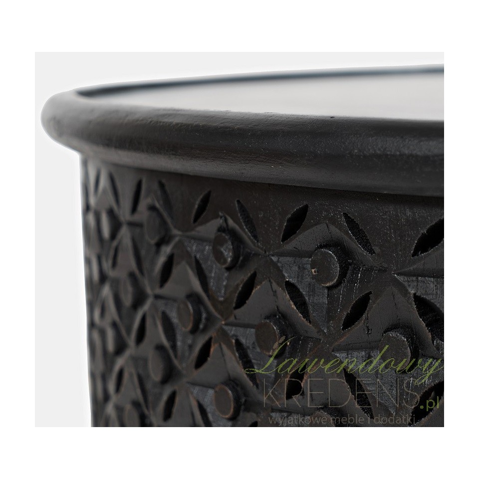 Elegancki, okrągły stolik Avola z zabudowaną podstawą, która posiada oryginalny, regularny wzór. Całość w czarnym kolorze nada wnętrzu niepowtarzalny klimat. Meble Livin Hill to wyjątkowe meble sprawdzające się w domu każdego, kto ceni funkcjonalność jak również ponadczasowy design. Koniecznie sprawdź pozostałe stoliki z kolekcji Avoli!