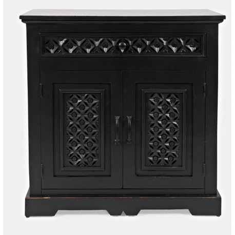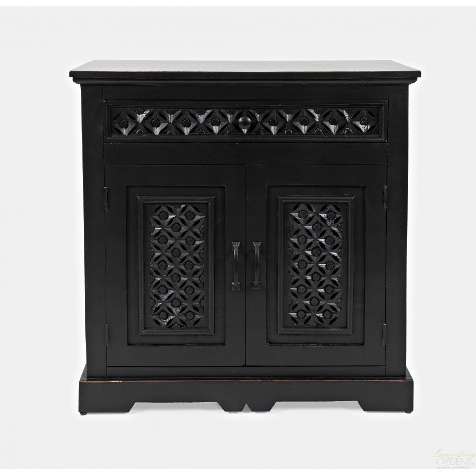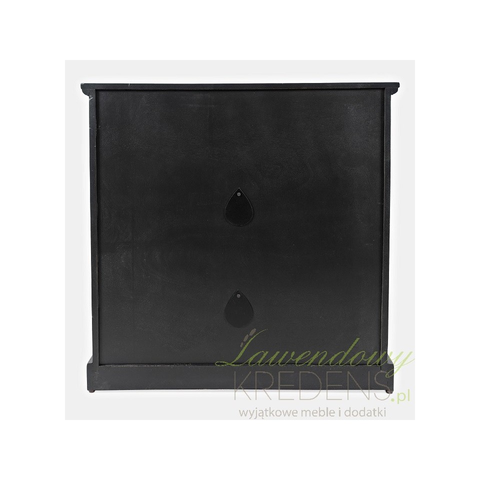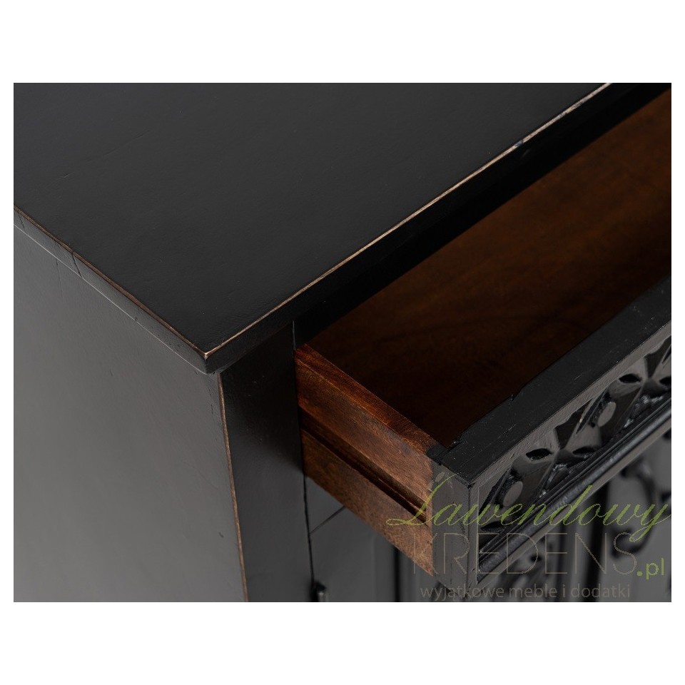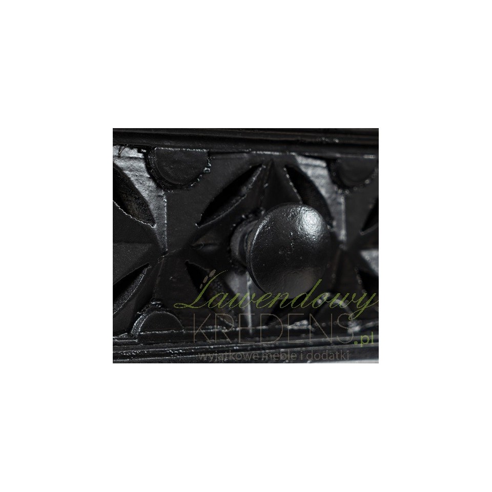 Komoda Avola w stylu prowansalskim zrobiona jest z trwałego drewna akacji, co gwarantuje Ci solidny mebel na lata. Efektowny wygląd mebla podkreślają ażurowe dekoracje na drzwiach i froncie pojedynczej szufladki. Czarna komoda w stylu prowansalskim została zaprojektowana w sposób umożliwiający jej maksymalną funkcjonalność - posiada wewnątrz półkę i poręczne uchwyty z metalu. Czarne meble to świetny wybór!