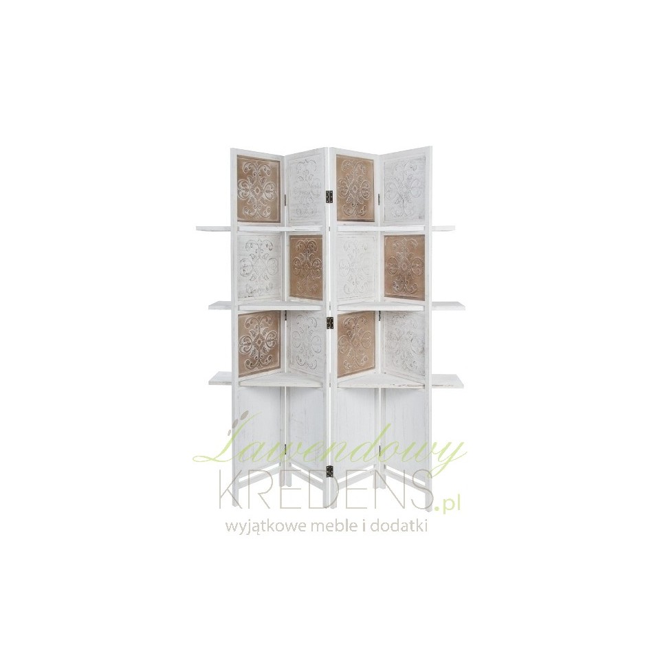 Praktyczna i dosyć nietypowa dekoracja wnętrza oraz przegroda pomieszczeń w jednym to parawan prowansalski. Parawan czteroczęściowy z bielonymi dekorami wyposażony jest w półki, które możesz dowolnie zagospodarować. Parawan z półkami to element wyposażenia dla Twojego wnętrza, która wzbudzi zachwyt każdego. Zamów wymarzony parawan w stylu prowansalskim już dzisiaj!