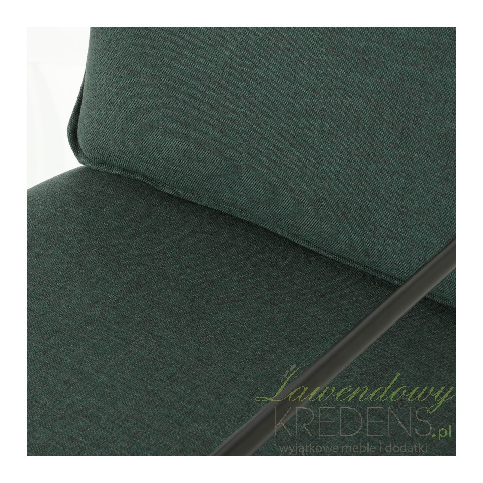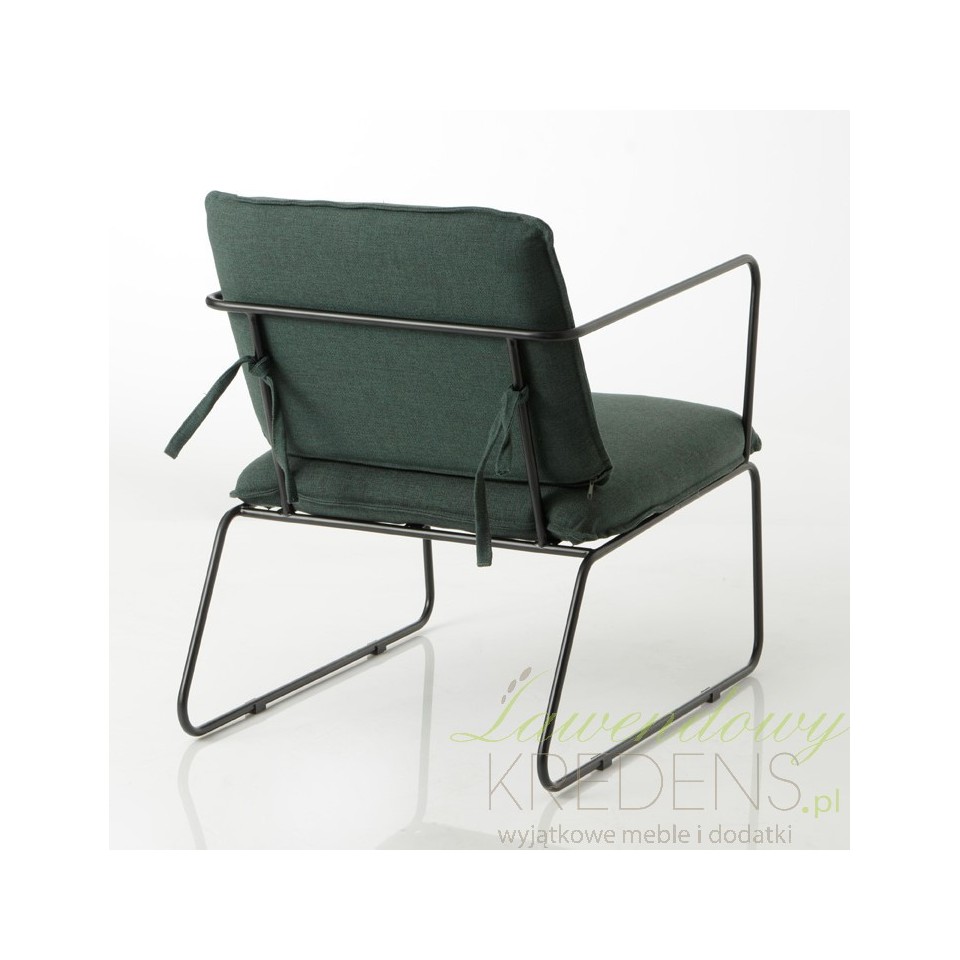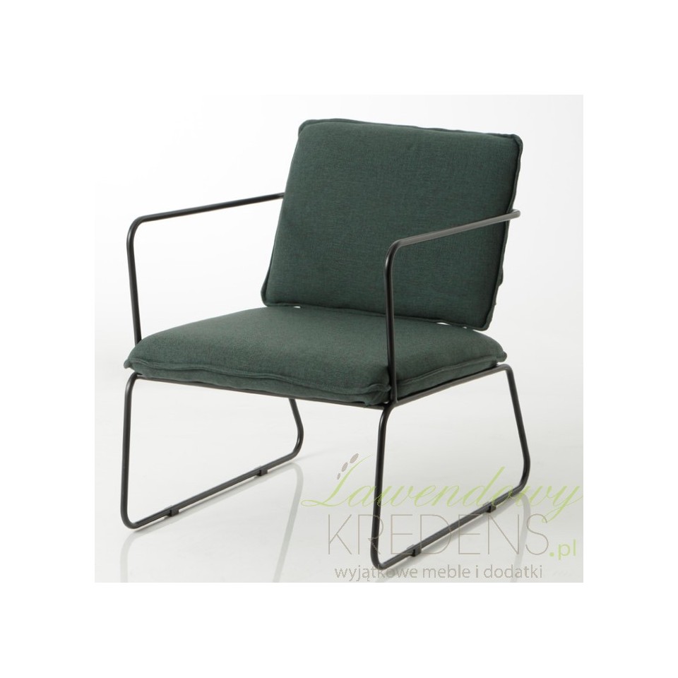 Fotel loft wyposażony jest w stelaż wykonany z metalu w kolorze czarnym. Siedzisko i oparcie siedzenia tworzą dwie poduszki uszyte z tkaniny w eleganckim kolorze ciemnozielonym. To właśnie one sprawiają, że mebel znajduje swoich sprzymierzeńców wśród osób, które cenią komfort i wygodę. Pozostałe meble loftowe od francuskiego producenta, które znajdziesz w naszym sklepie pozwolą Ci zaaranżować dom zgodnie z najnowszymi trendami.