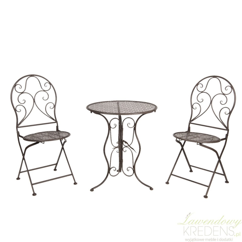 Zestaw mebli ogrodowych Clayre&Eef od holenderskiej firmy to gwarancja komfortowego wypoczynku w ogrodzie lub na balkonie, a w dodatku w atrakcyjnej cenie. Charakter zestawu, kształt poszczególnych mebli i fantazyjne rzeźbienia przywodzą na myśl ciepłe i klimatyczne rejony Włoch, gdzie na skąpanych w słońcu tarasach z ludzie spędzają niezapomniane chwile. Zestaw składa się z trzech metalowych mebli: dwóch krzeseł i okrągłego stolika.