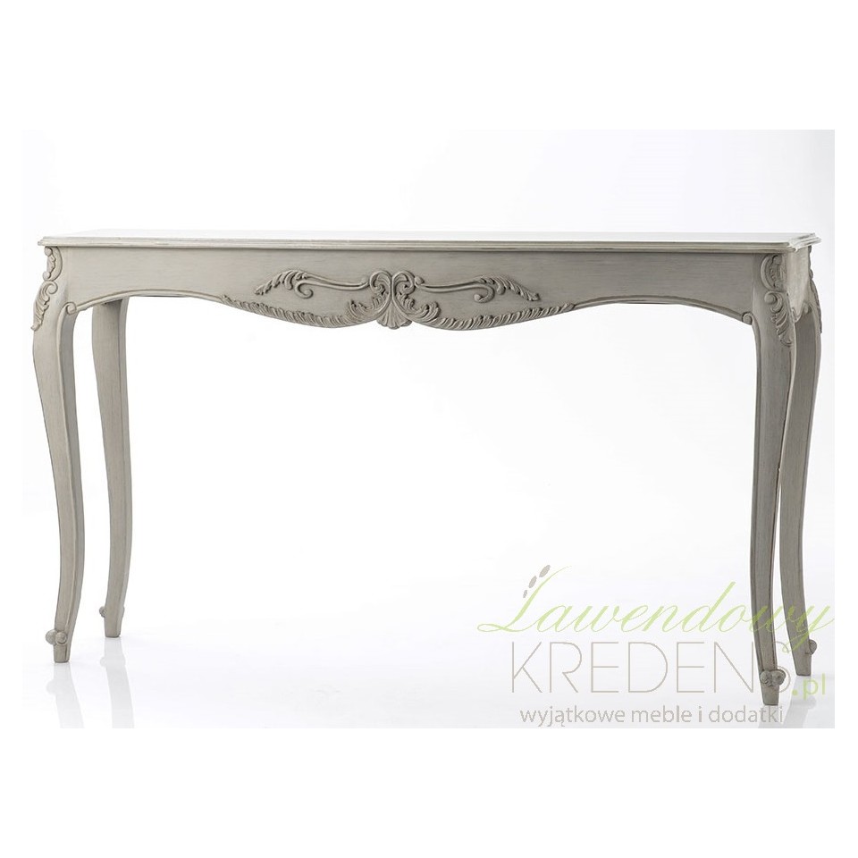 Konsola z kolekcji francuskich mebli, zachwyca swoim designem, jakością wykonania i elegancją. Połączenie szarego koloru i miękkich kształtów pozwoliło uzyskać ekskluzywny i efektowny mebel, odpowiadając najbardziej wyrafinowanym gustom naszych klientów. Dlatego też, konsola w stylu francuskim doskonale pasuje do stylu prowansalskiego i tradycyjnego. Meble w stylu francuskim charakteryzują się finezyjnymi, rzeźbionymi wykończeniami i detalami takimi jak na przykład piękne gałki.